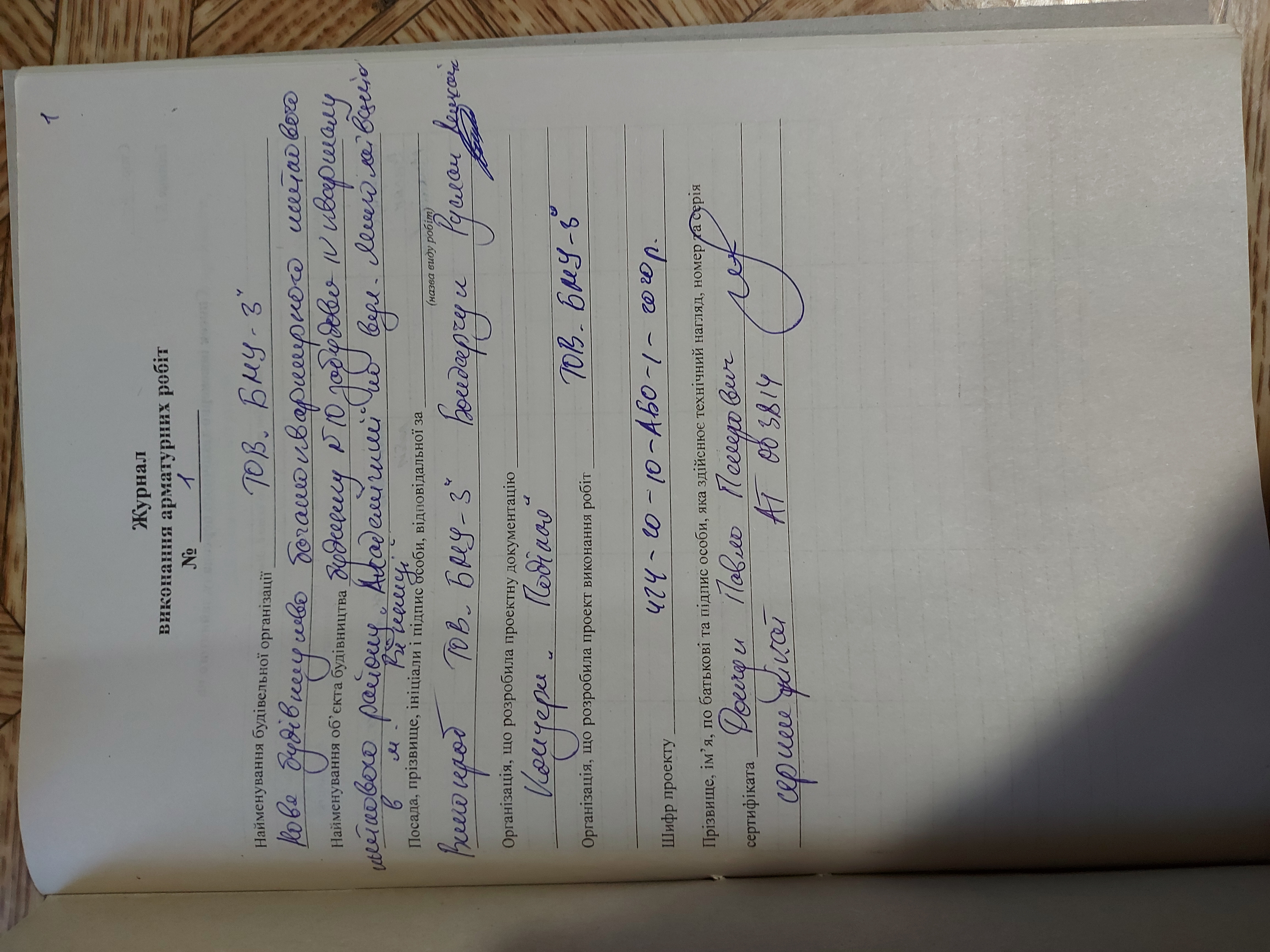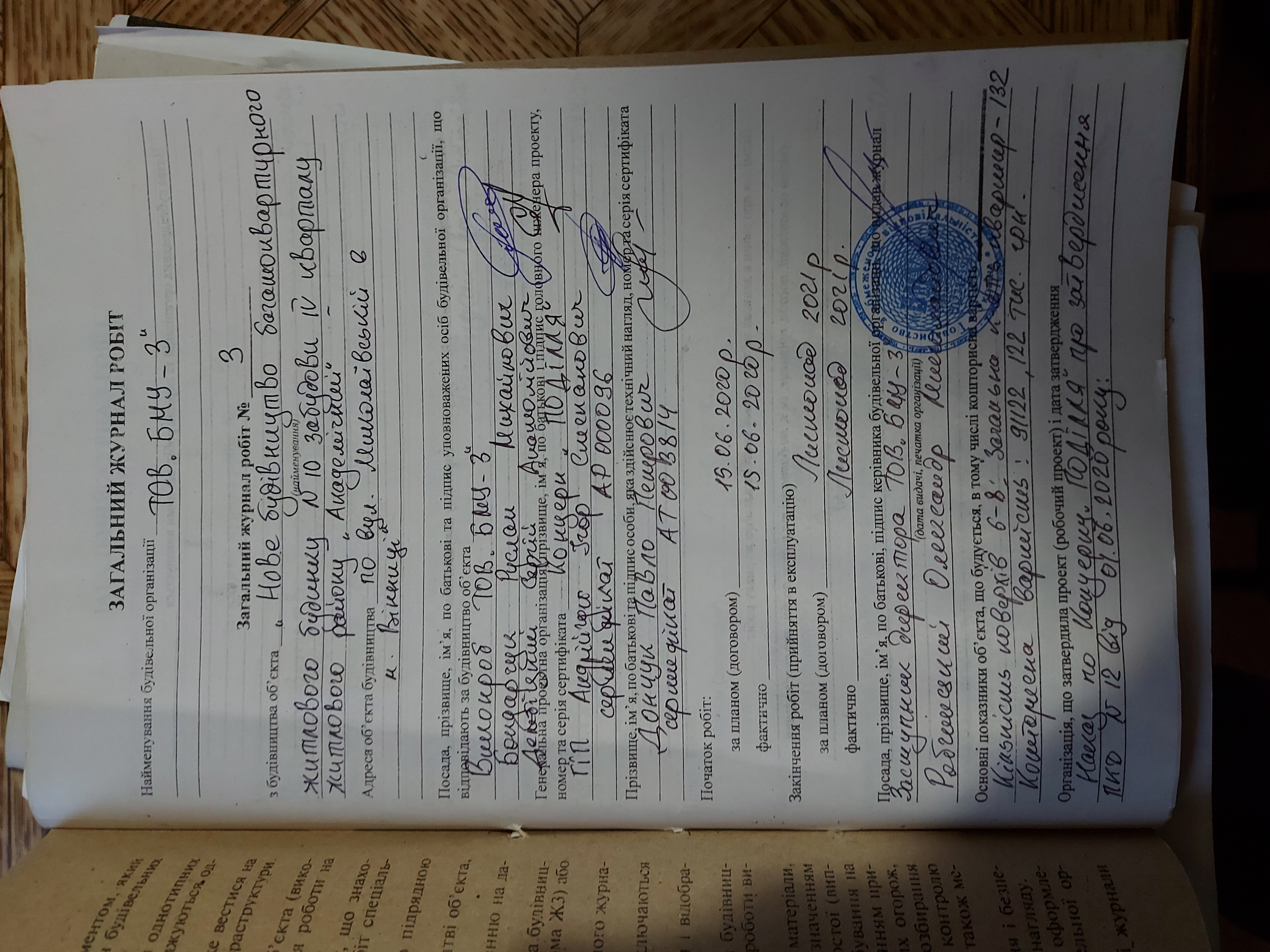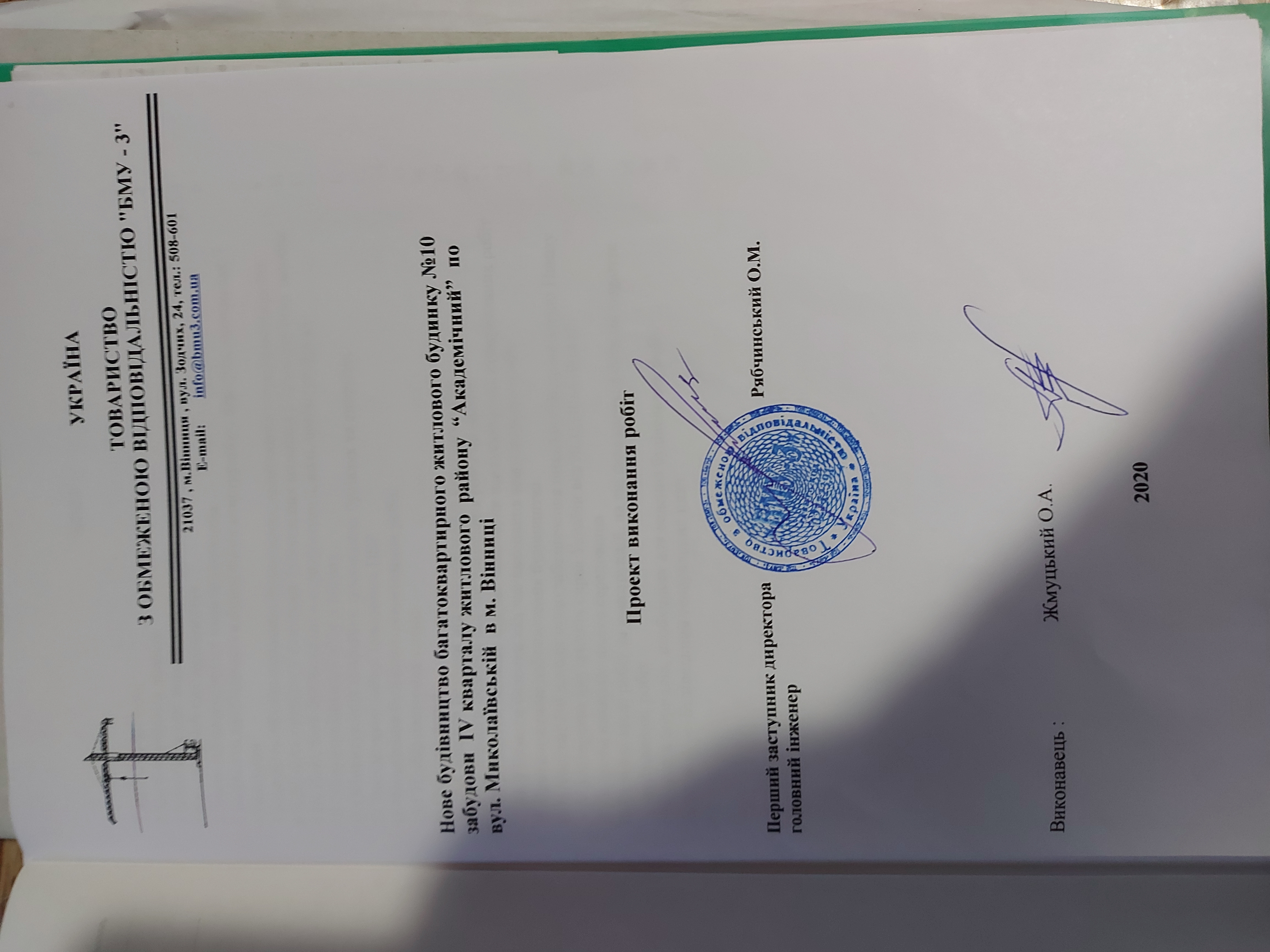 | Виконавець робіт | Бондарчук Руслан Михайлович | Загально-будівельні роботи | Наказ | 50 | 01.06.2020 |