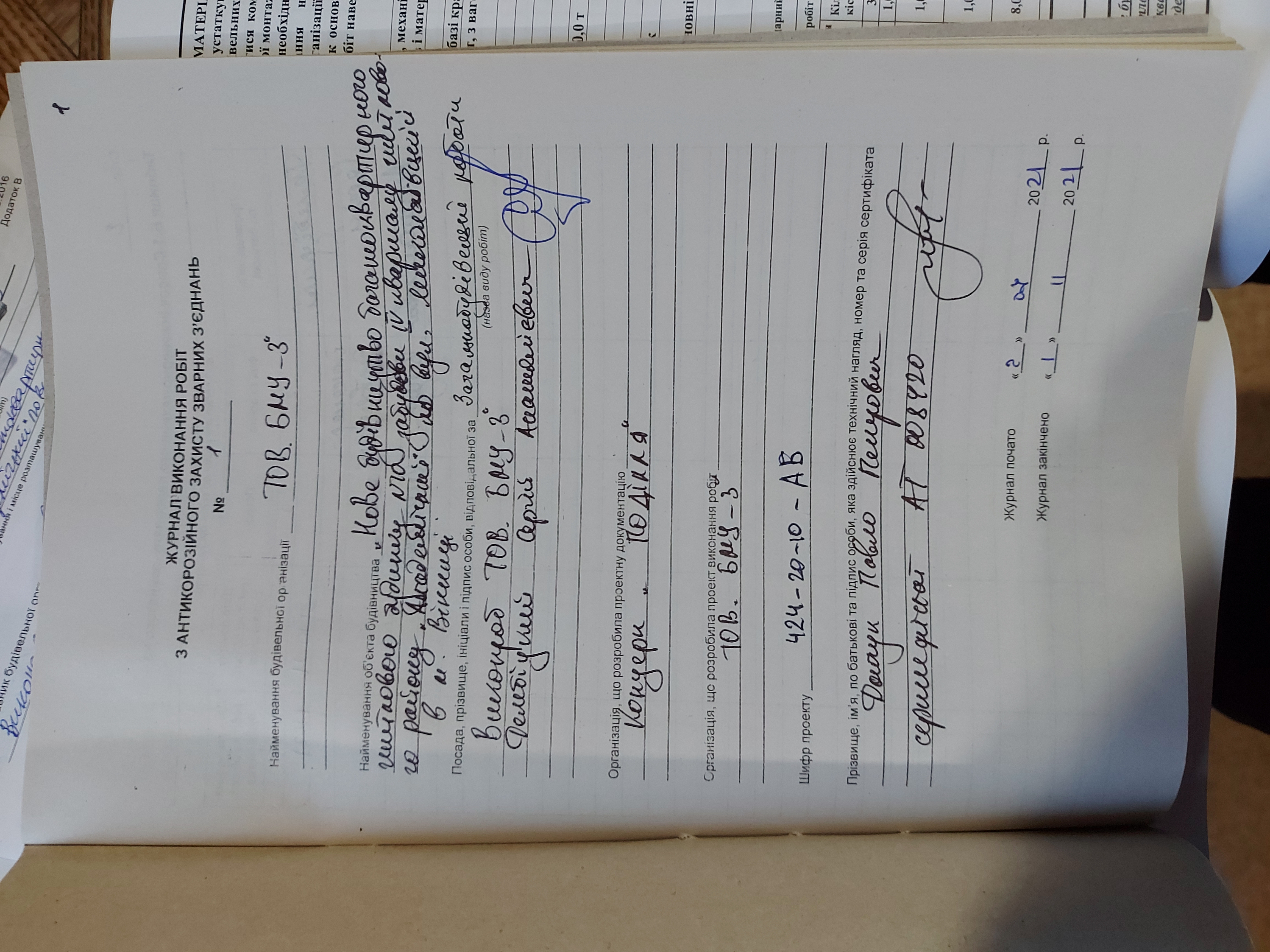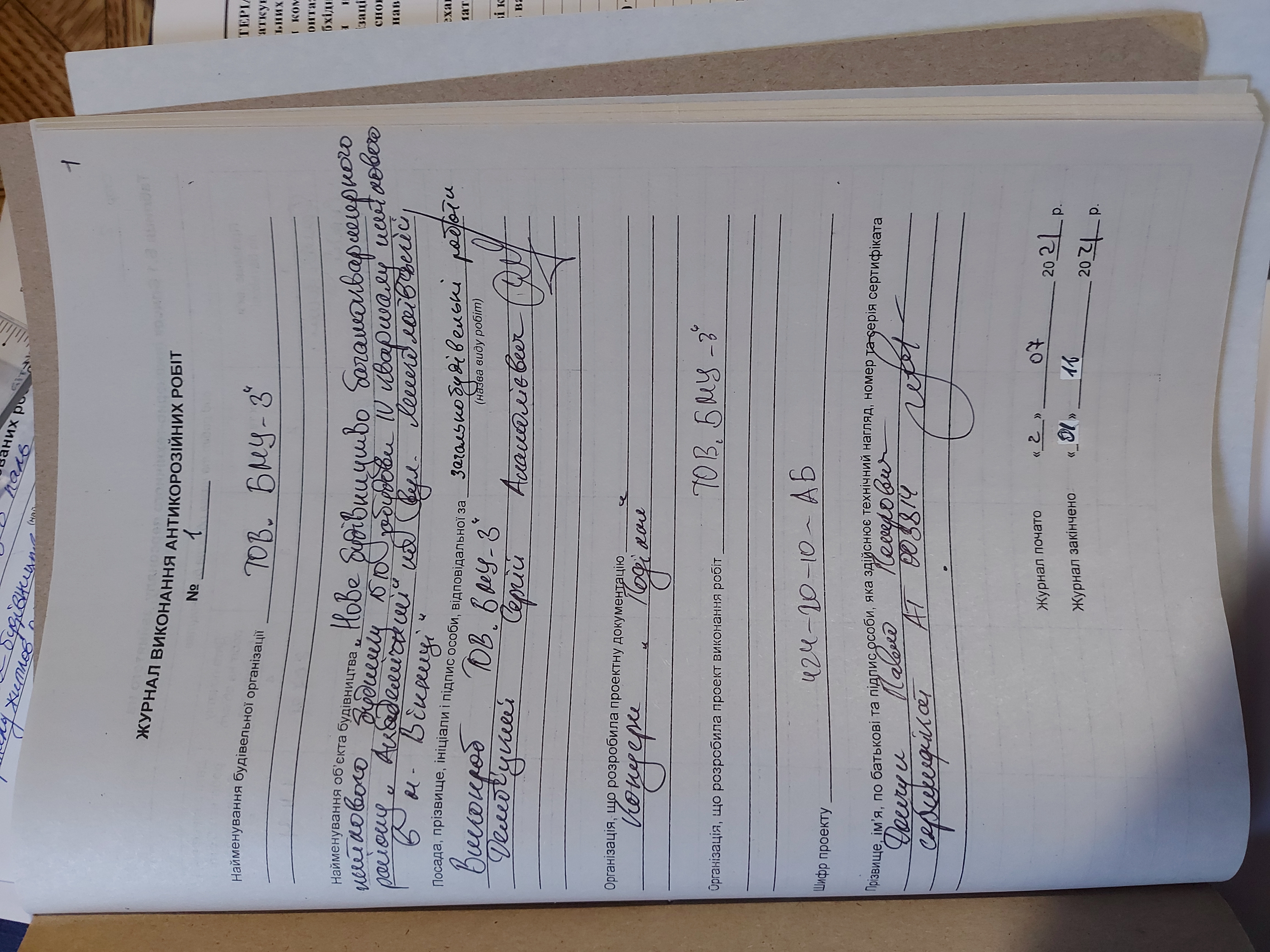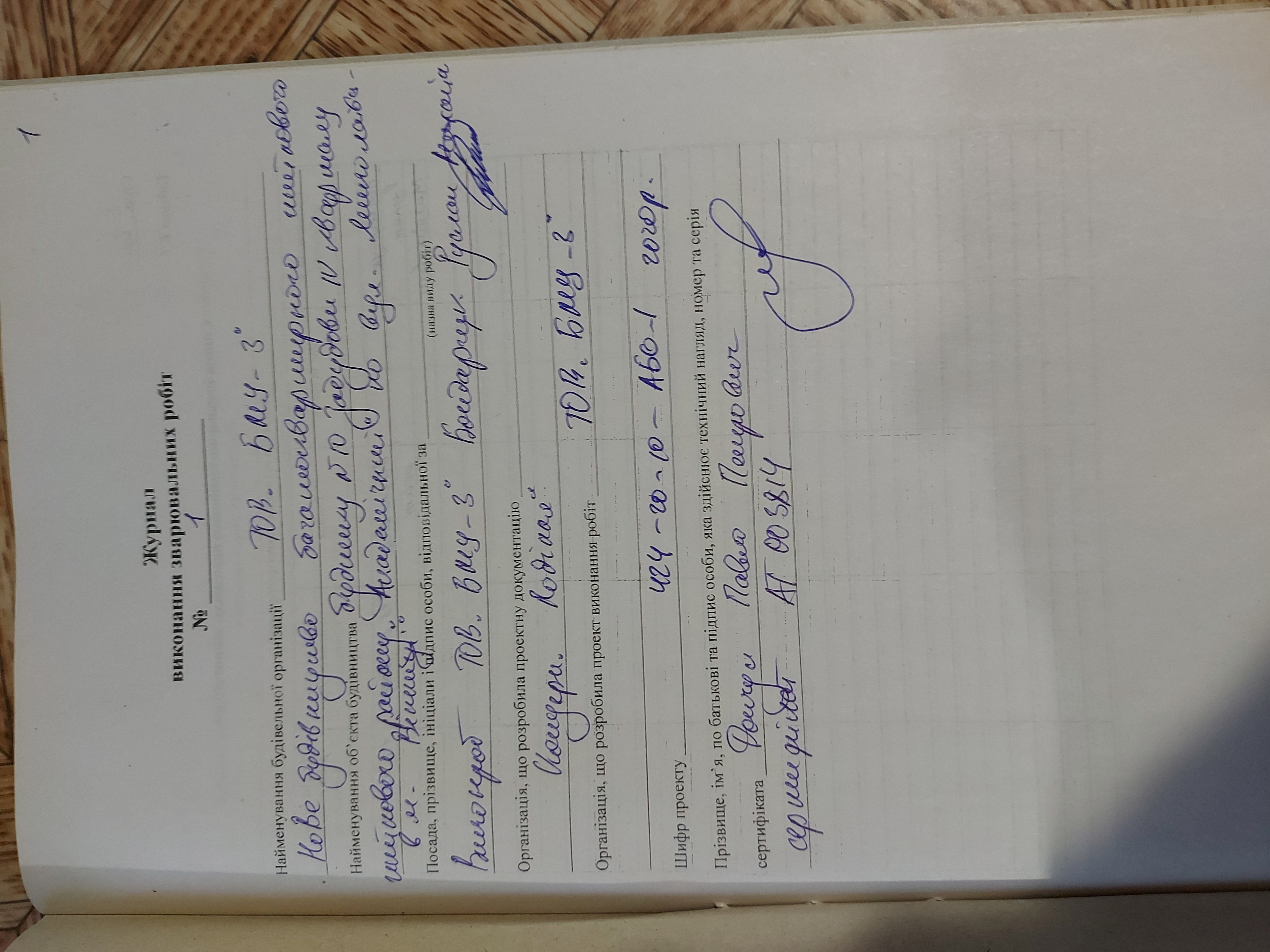 | Виконавець робіт | Бондарчук Руслан Михайлович | Загально-будівельні роботи | Наказ | 50 | 01.06.2020 |