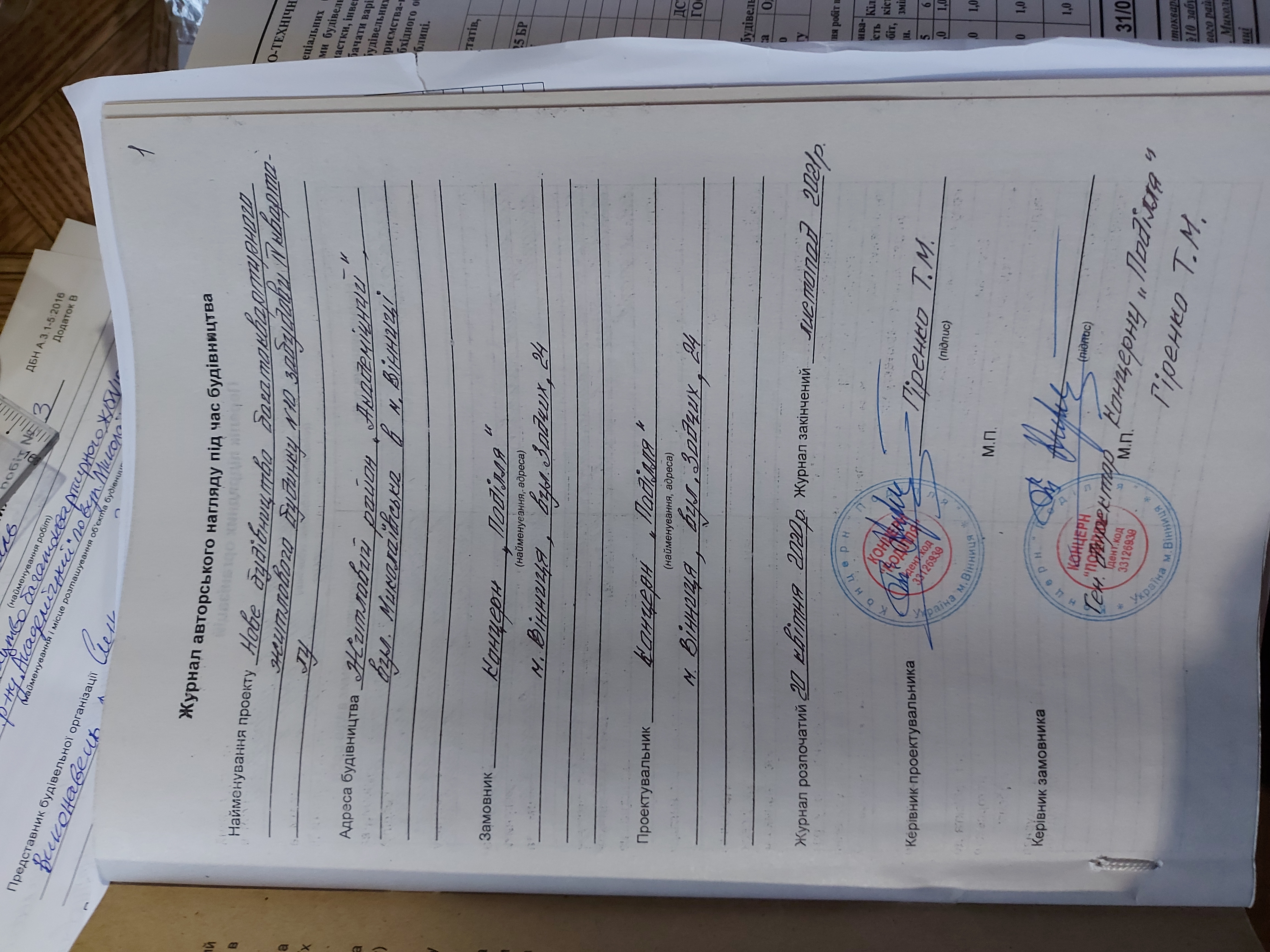 Документ про авторський нагляд, що пов'язаний з проектною документацією