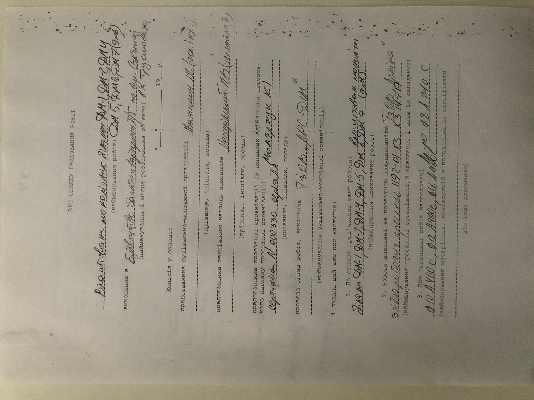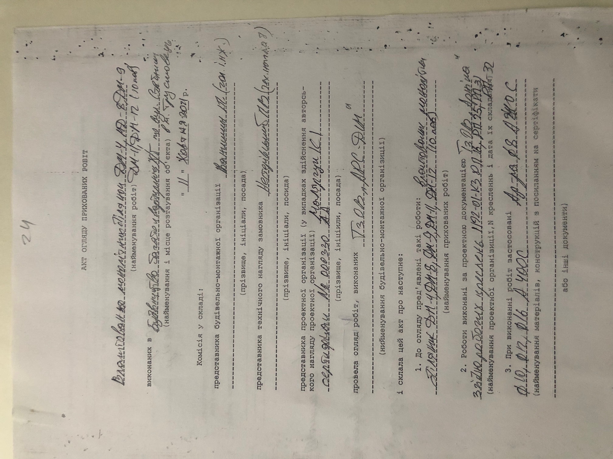 | Посада | ПІб | Види виконаних робіт | Назва документа | Номер документа | Дата видачі |