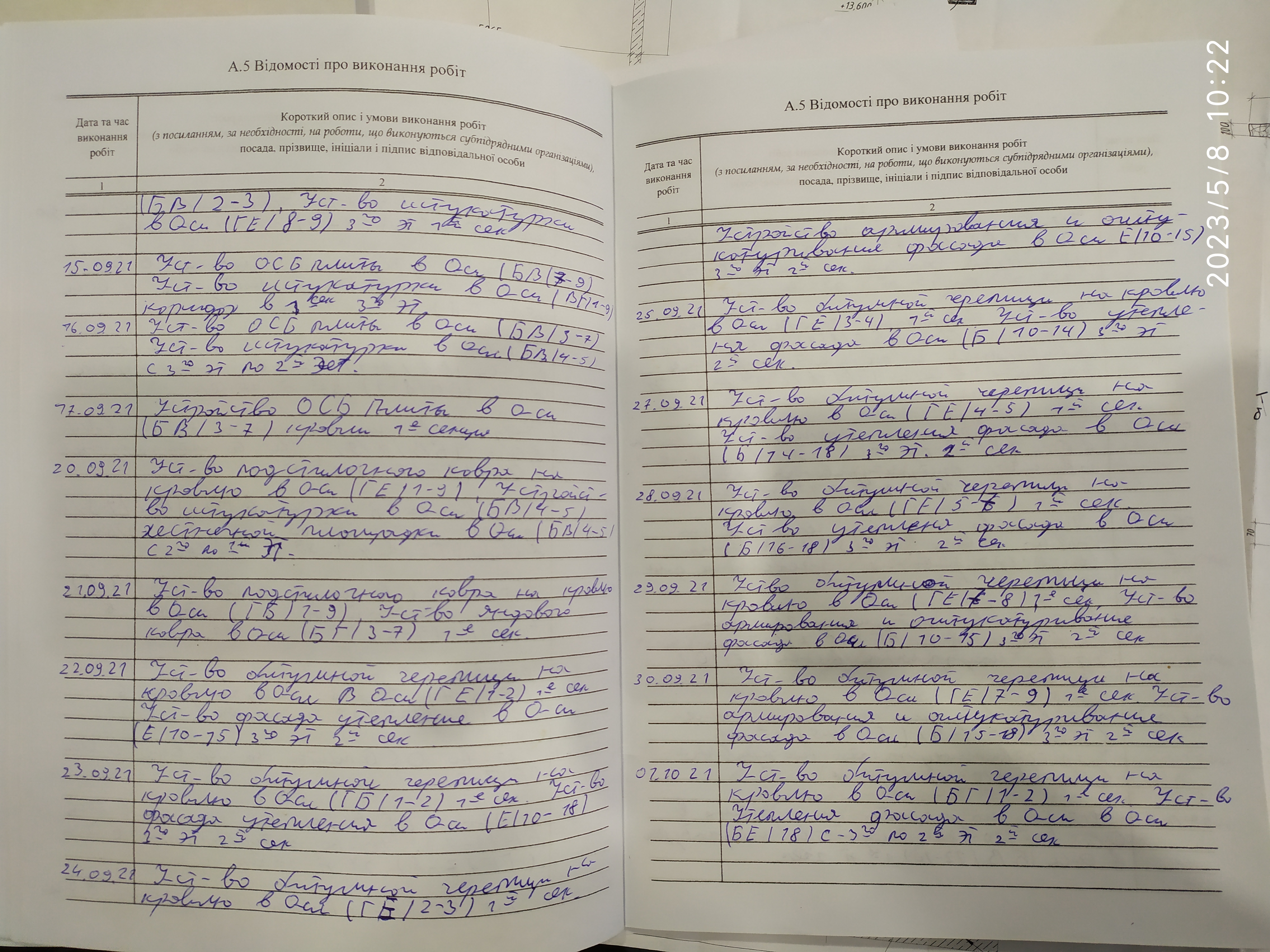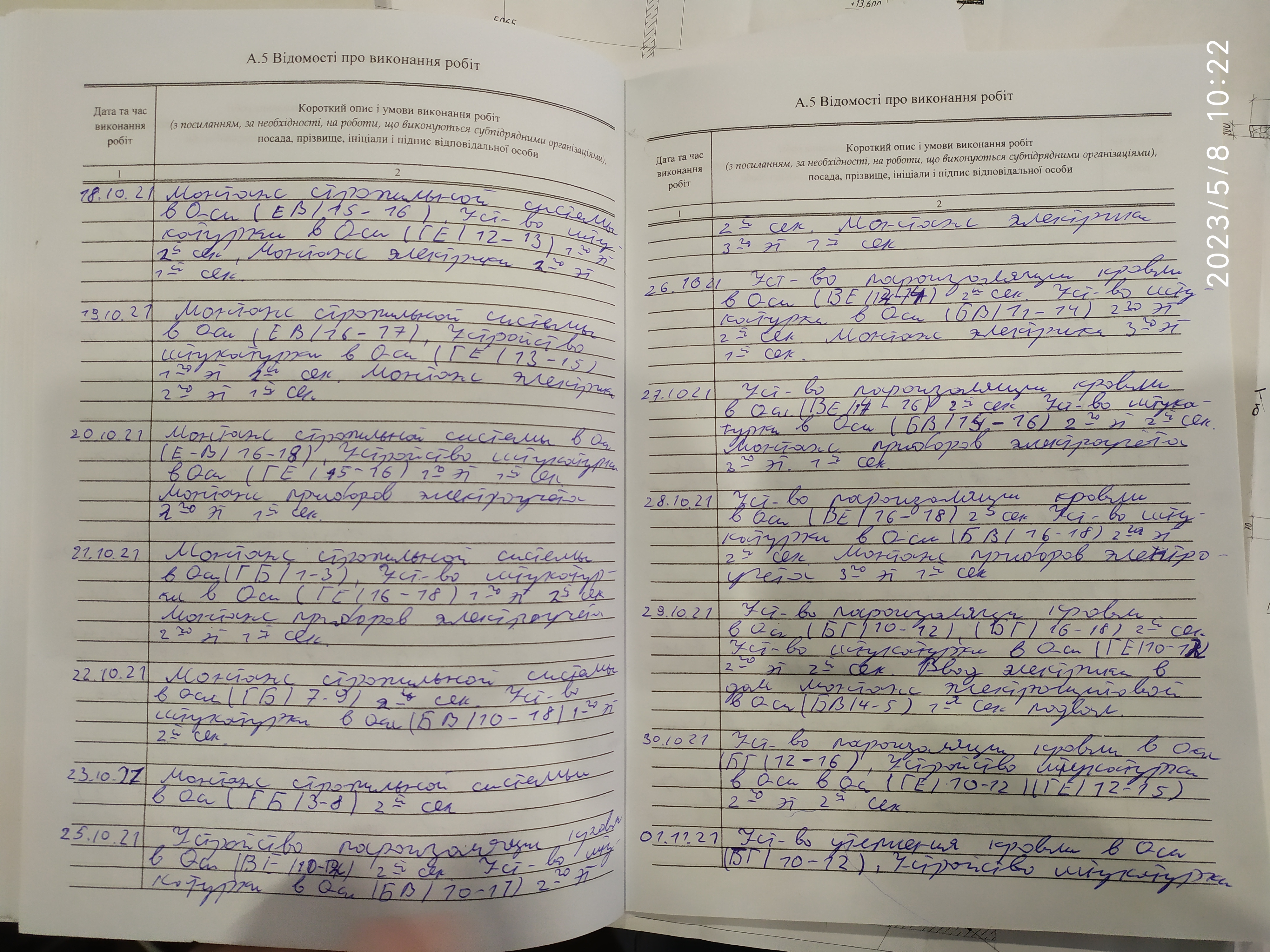 | 5 | Журнал виконання робіт з монтажу будівельних конструкцій | Не потребує |