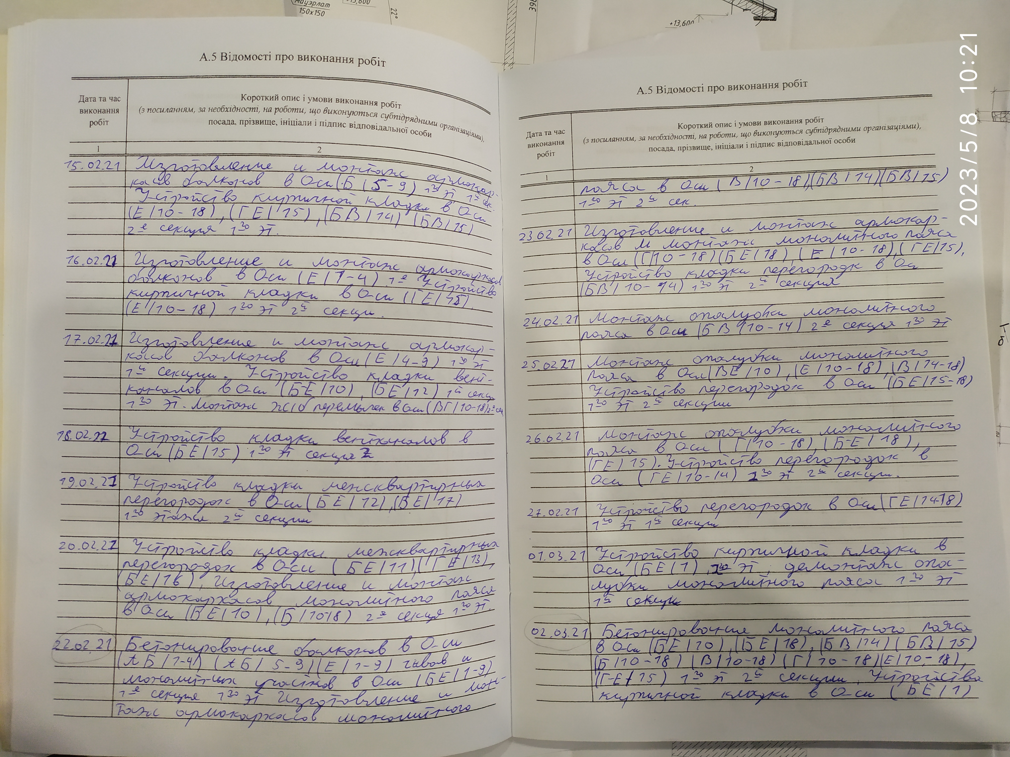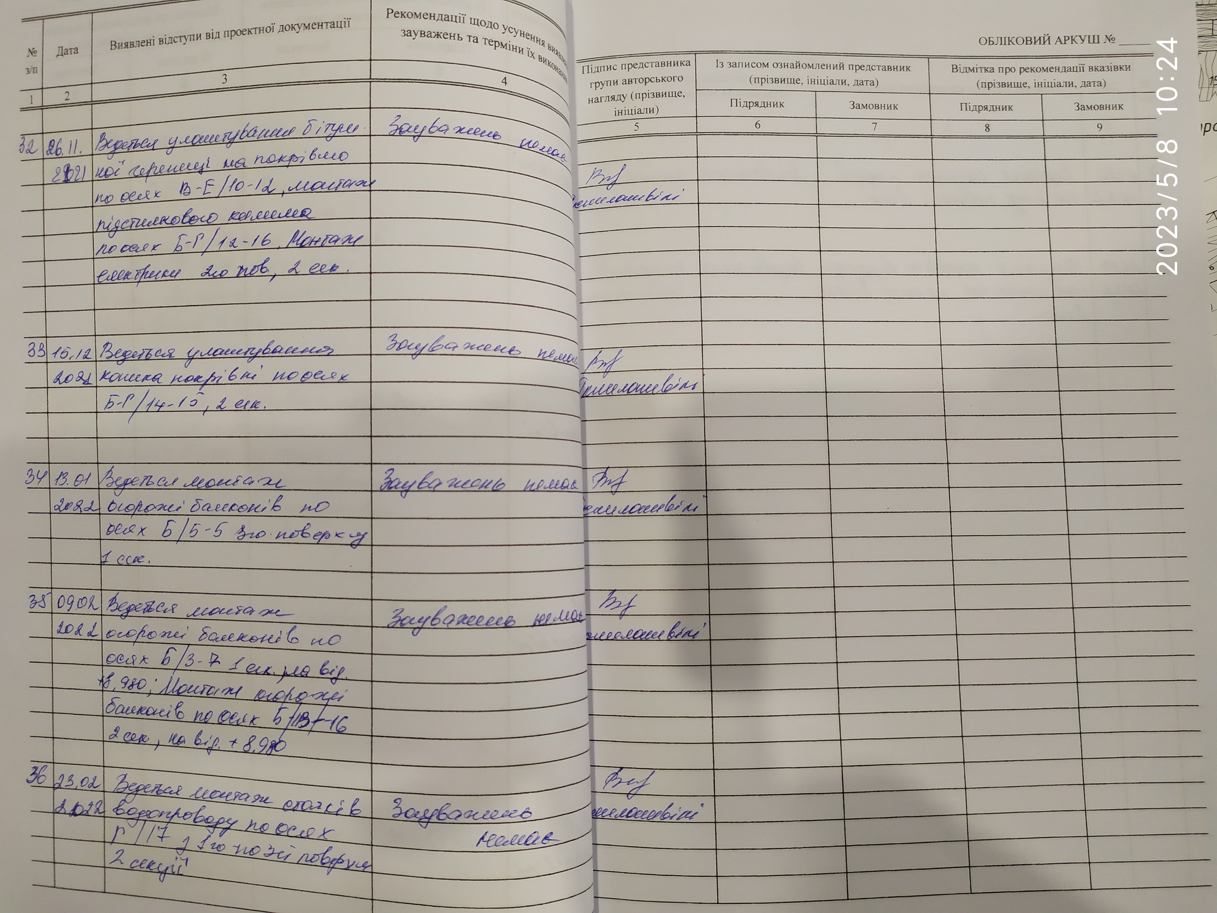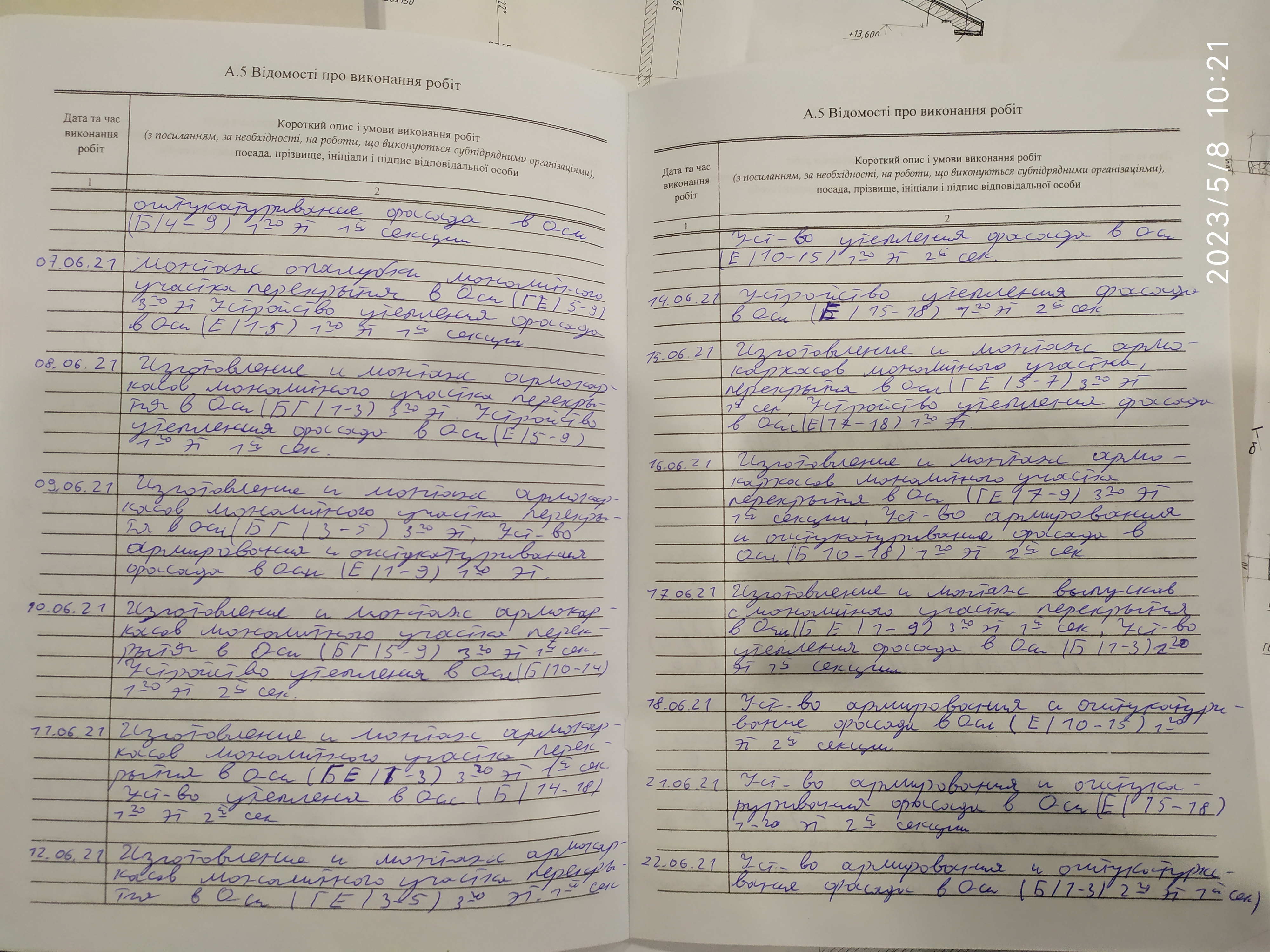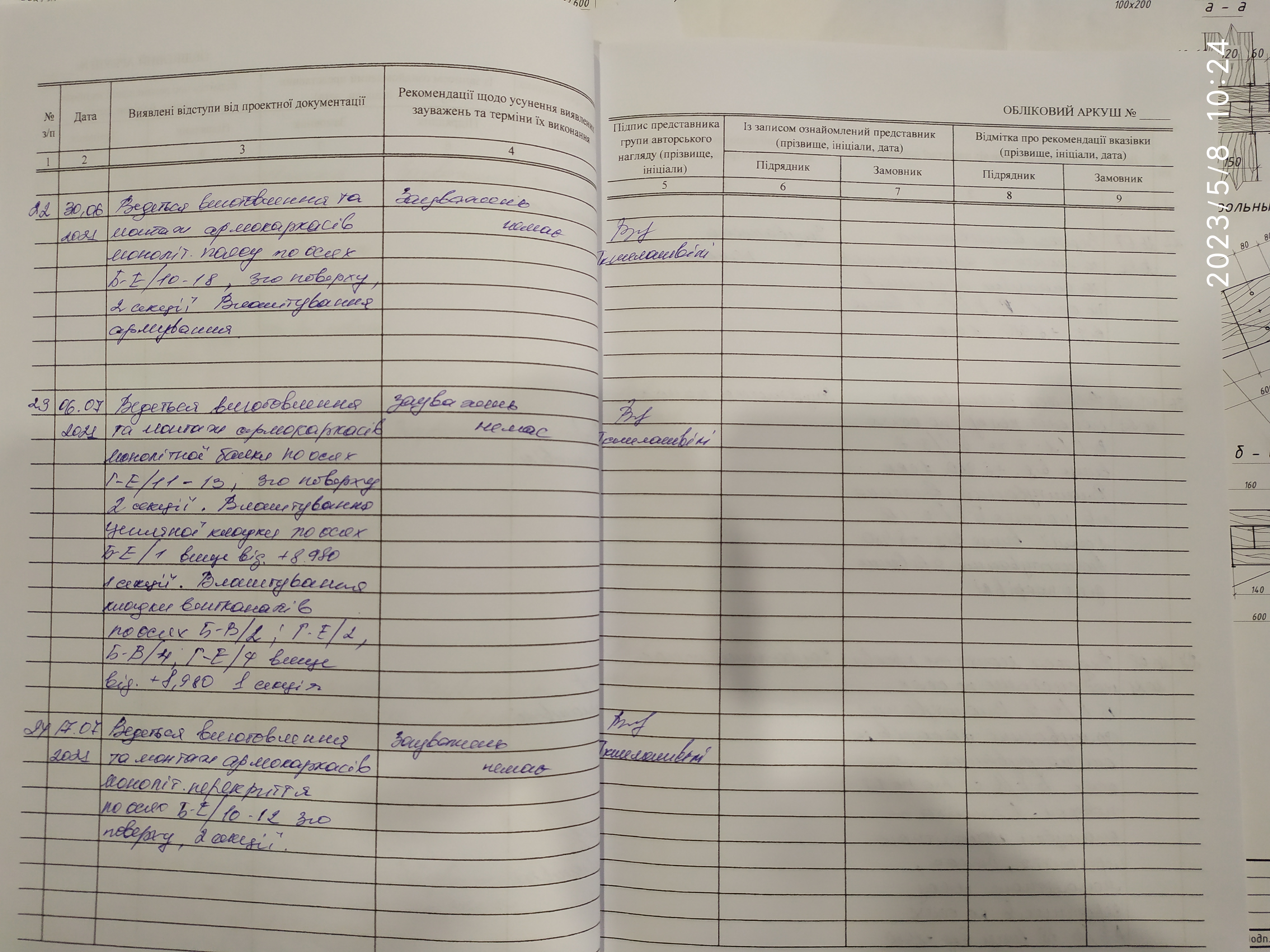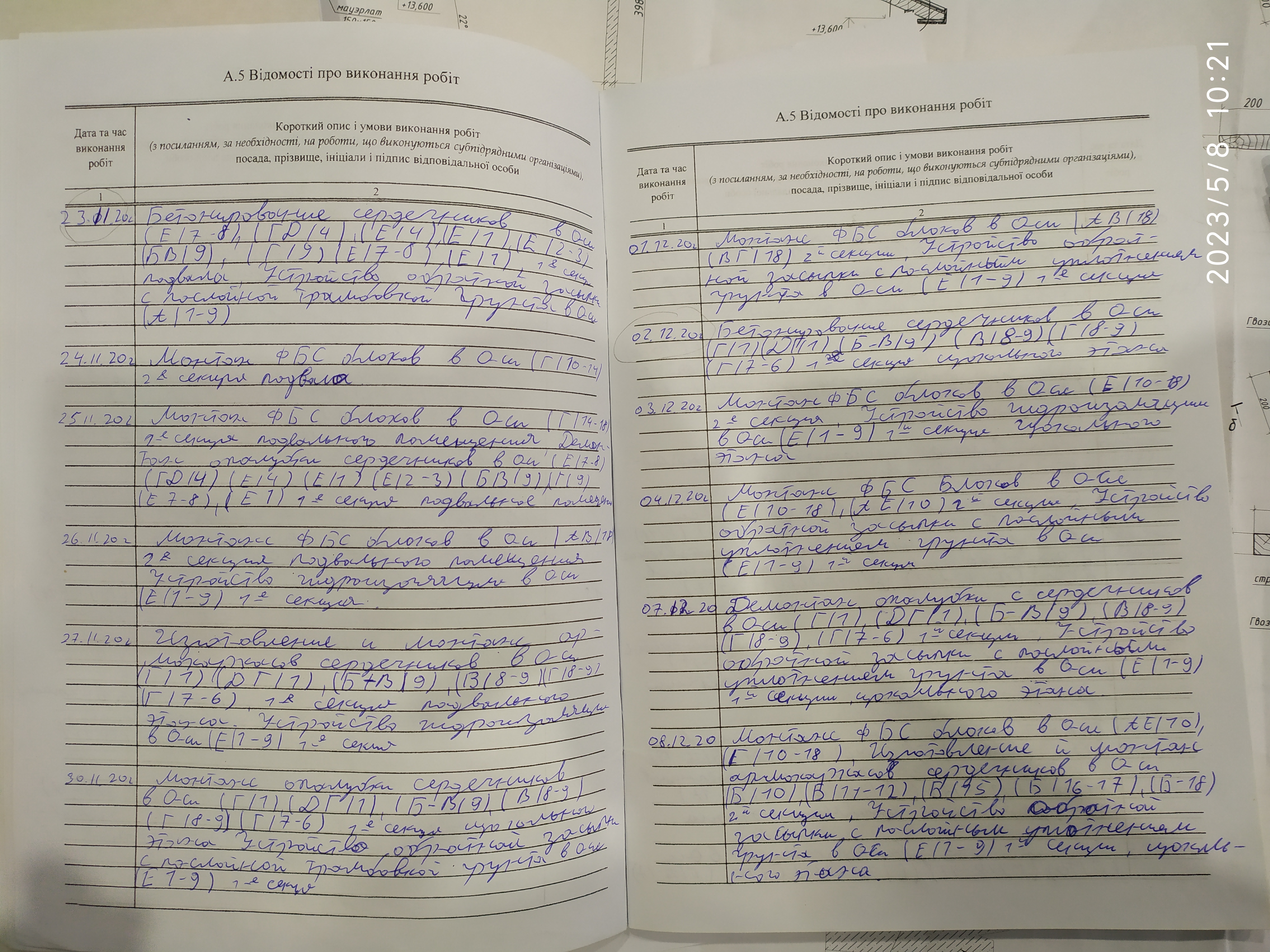 | 6 | Журнал виконання робіт із замонолічування монтажних стиків і вузлів | Не потребує |