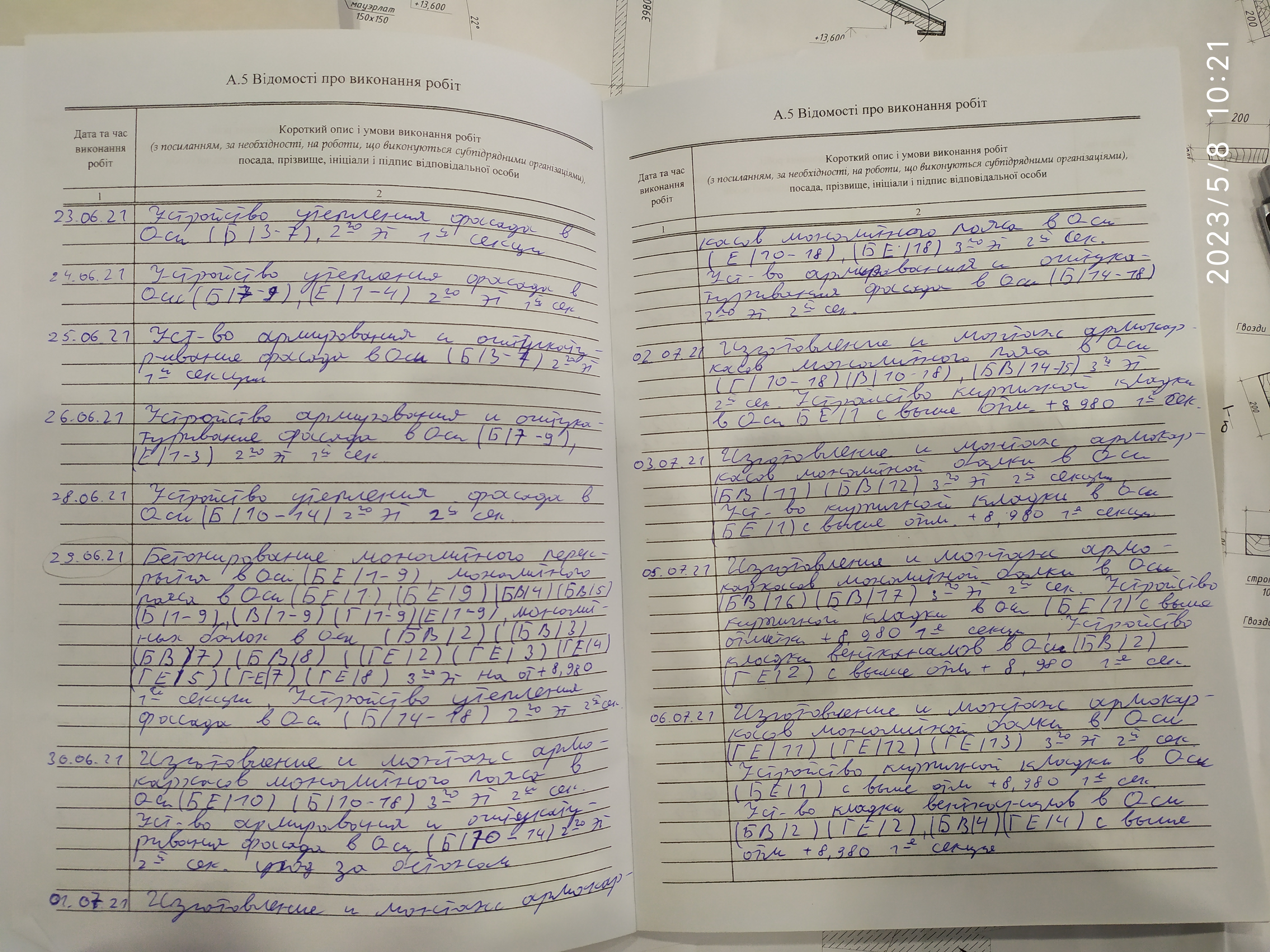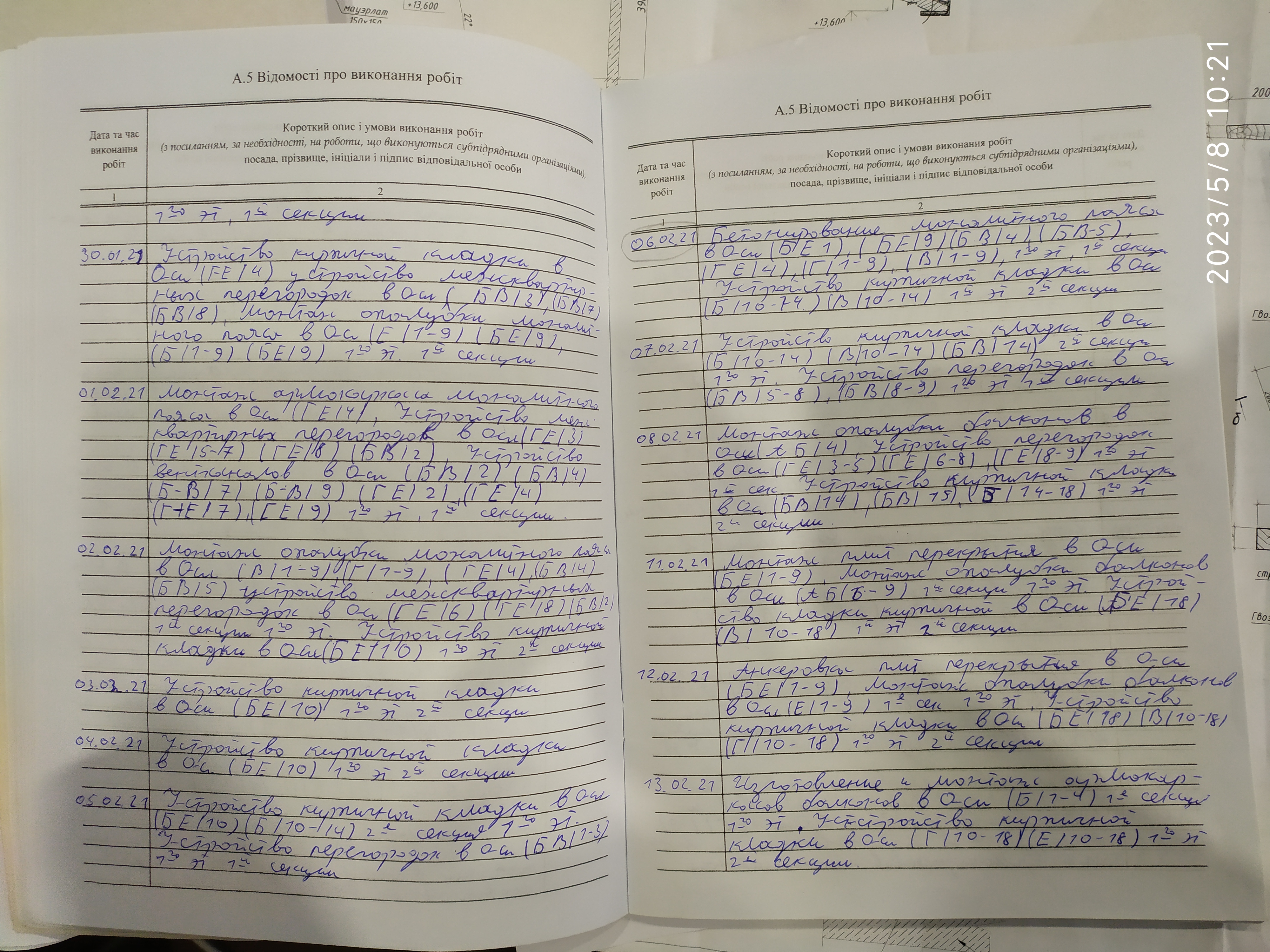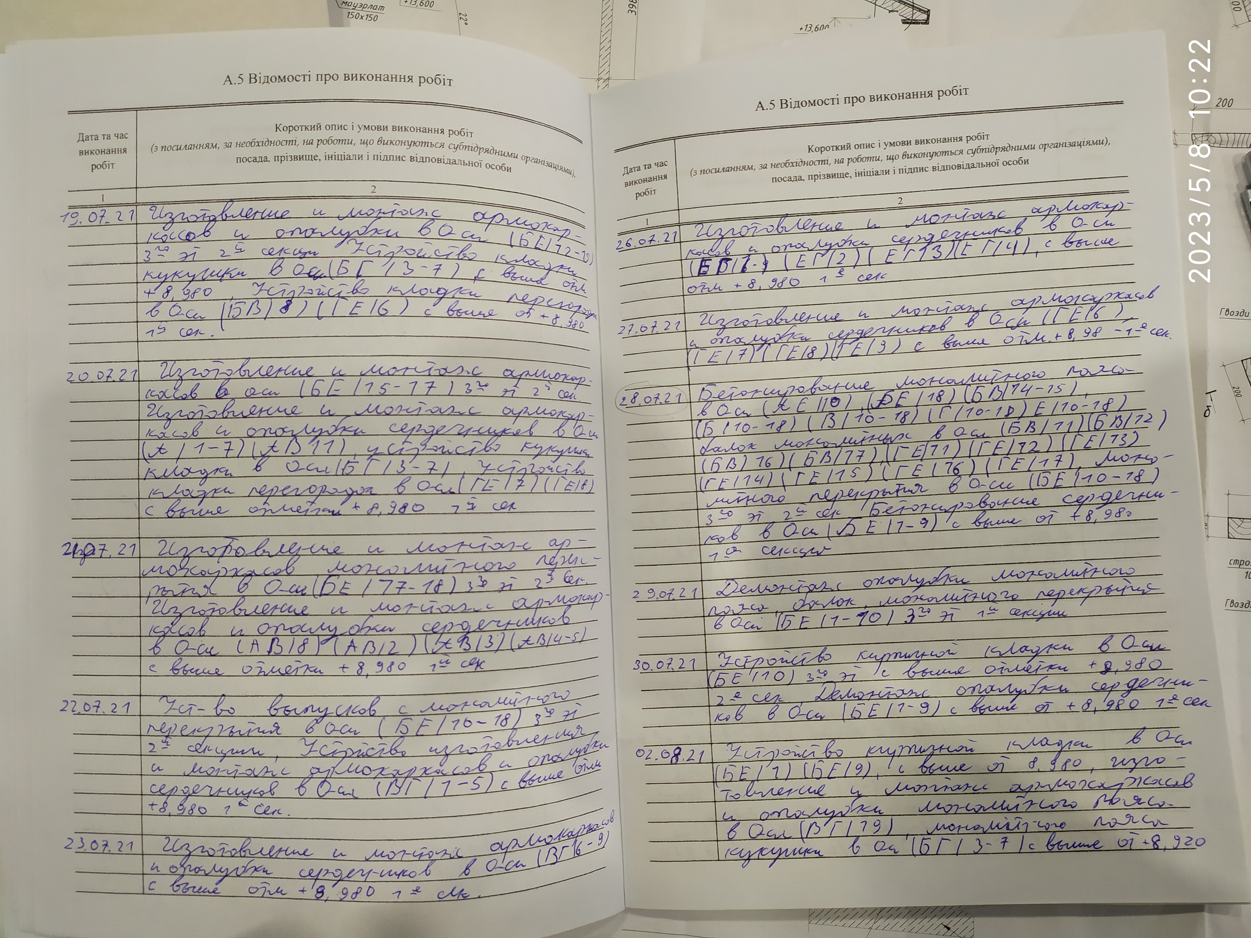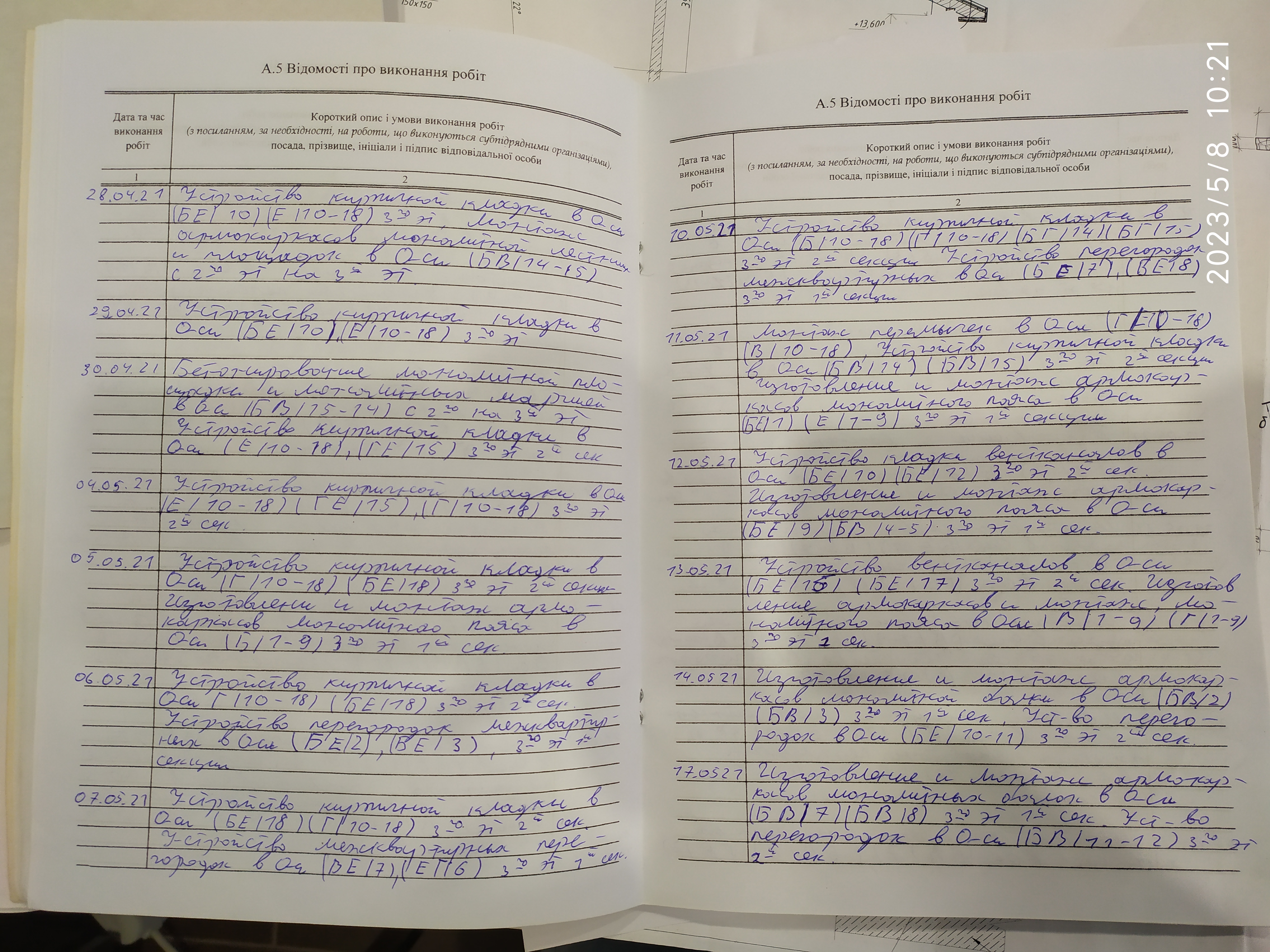 | 6 | Журнал виконання робіт із замонолічування монтажних стиків і вузлів | Не потребує |