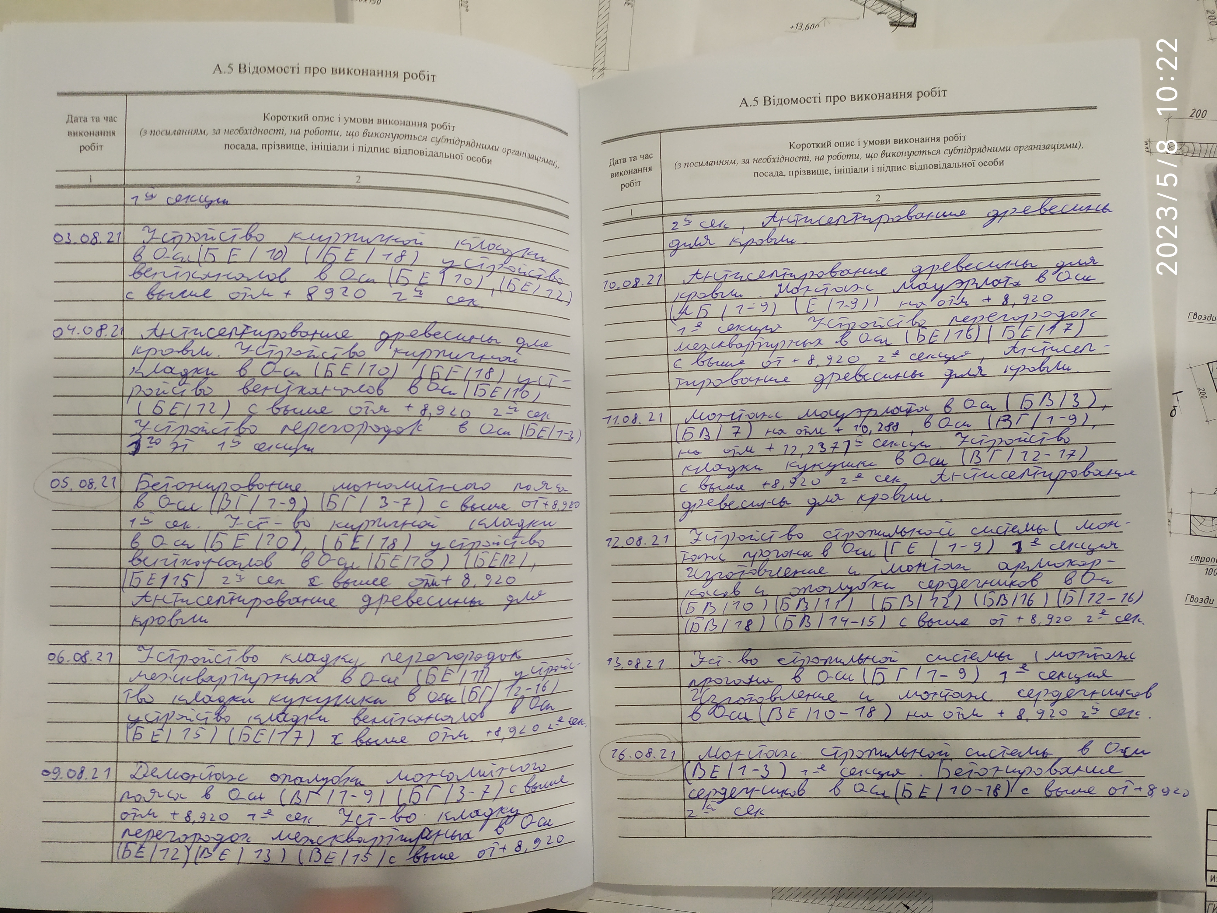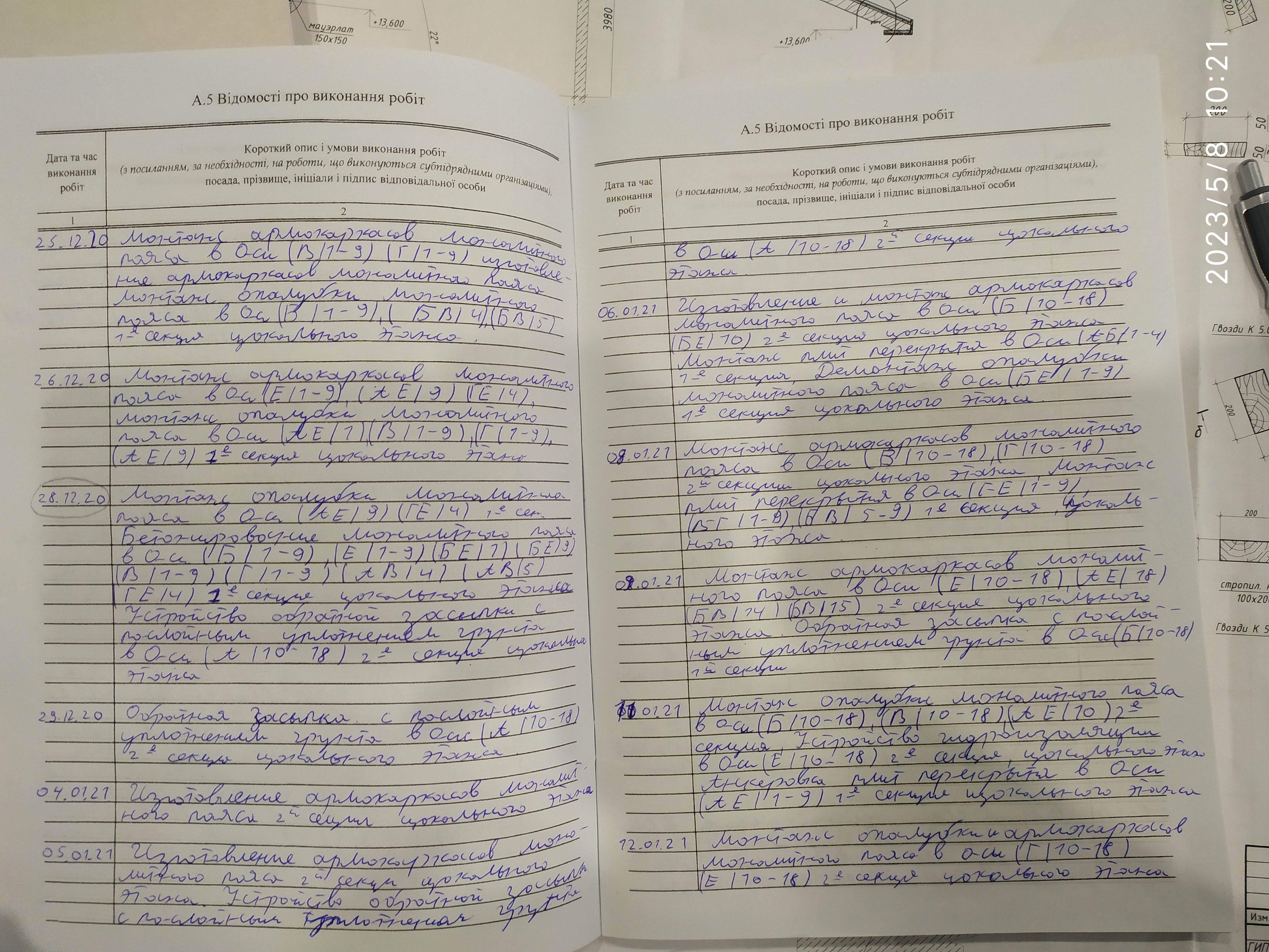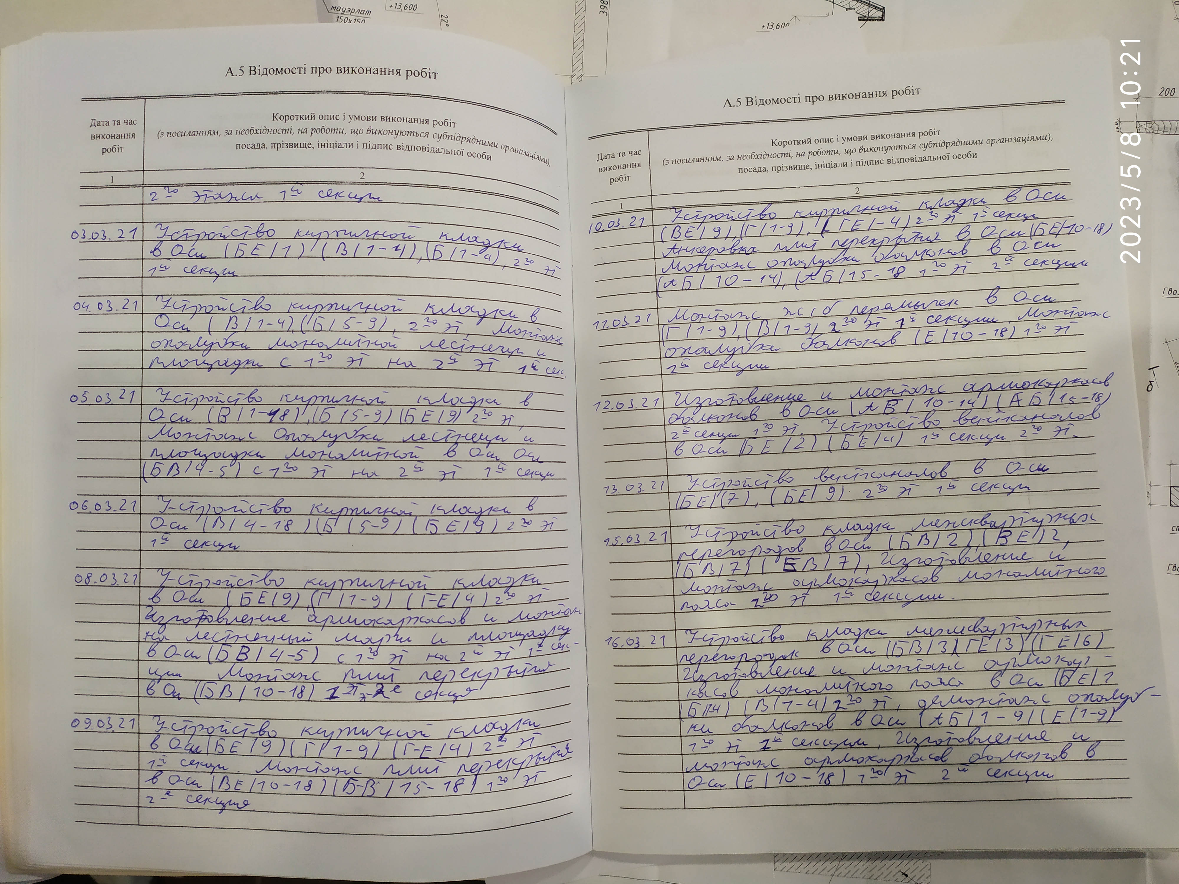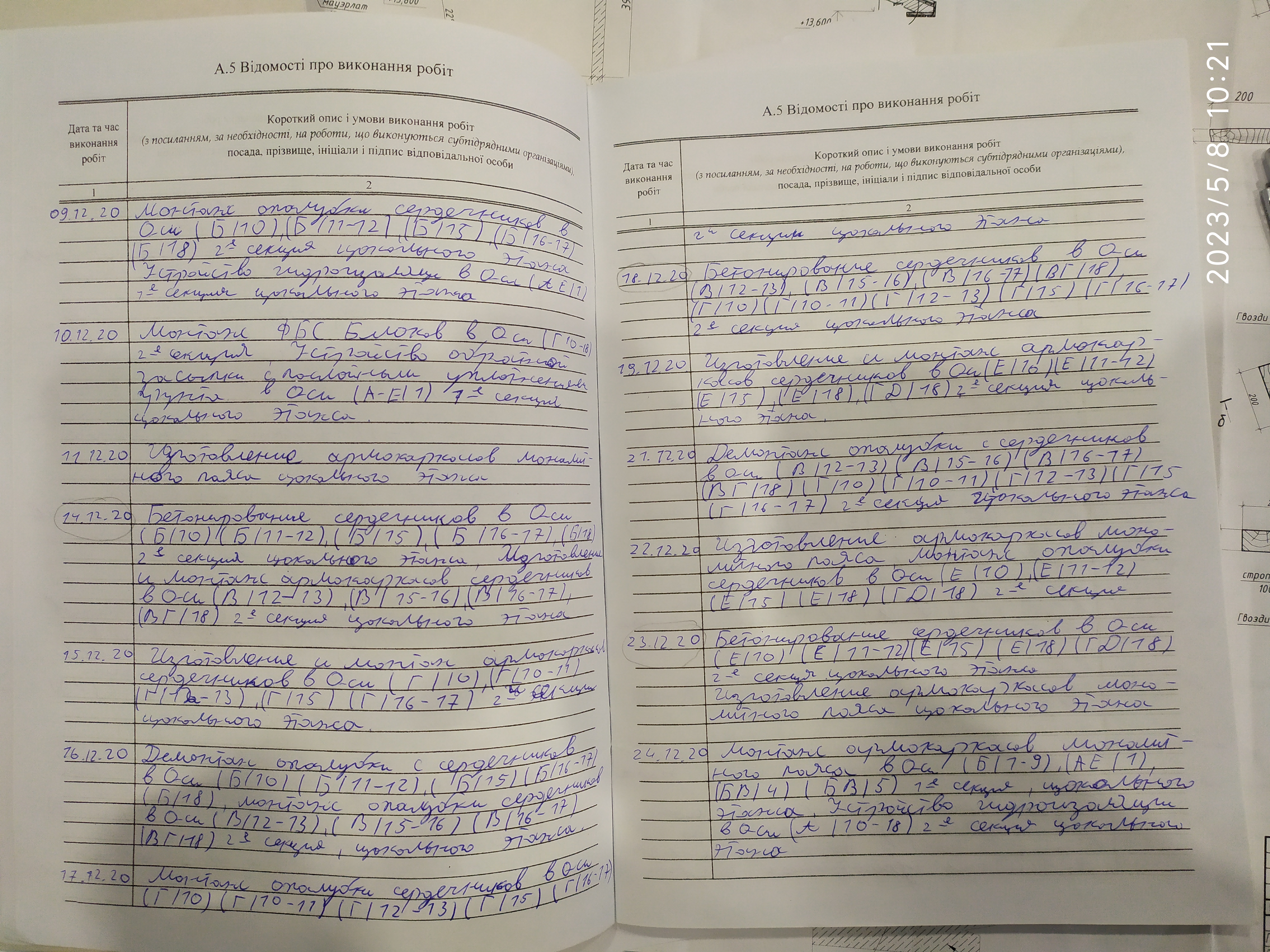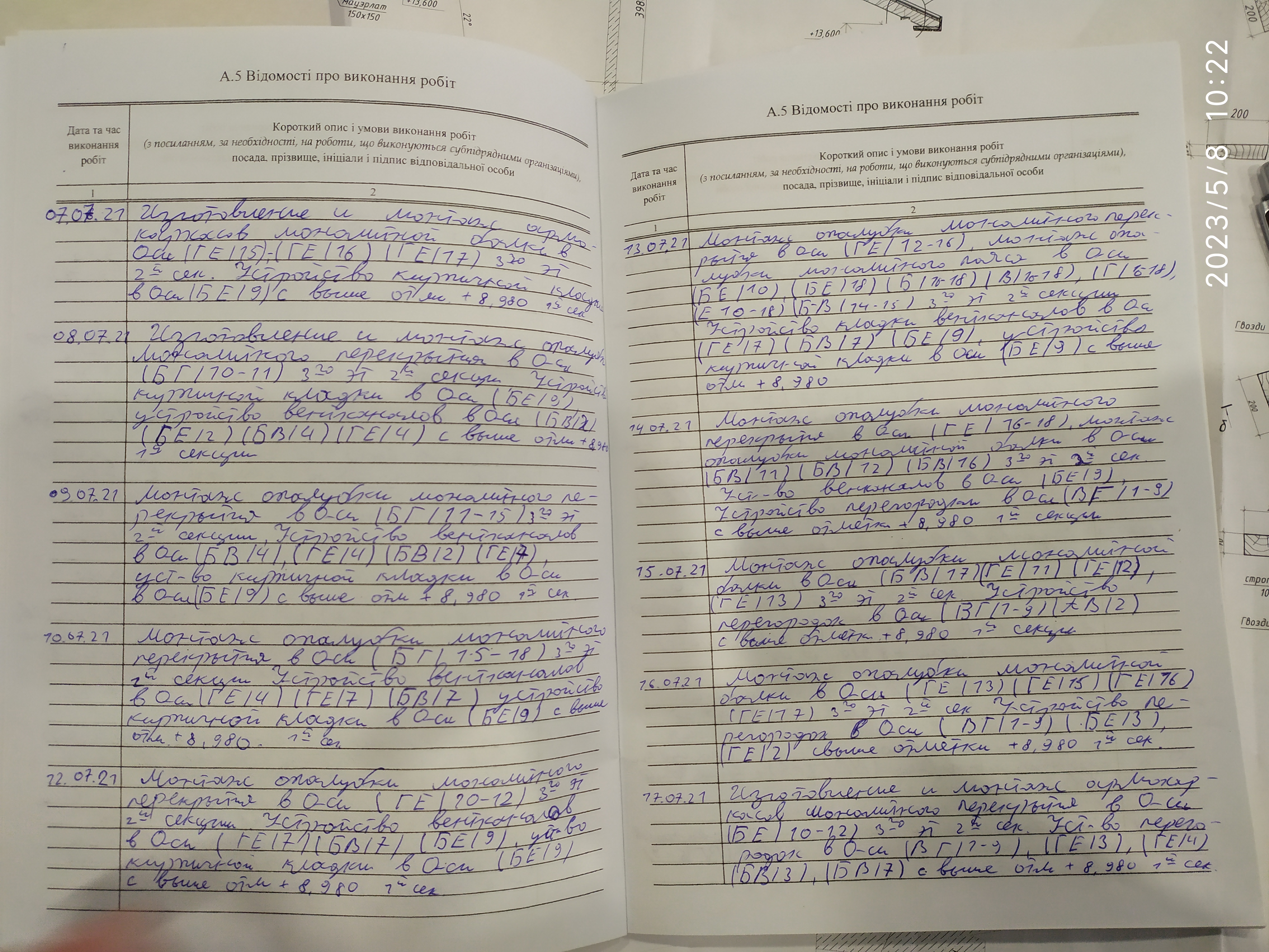 | 6 | Журнал виконання робіт із замонолічування монтажних стиків і вузлів | Не потребує |