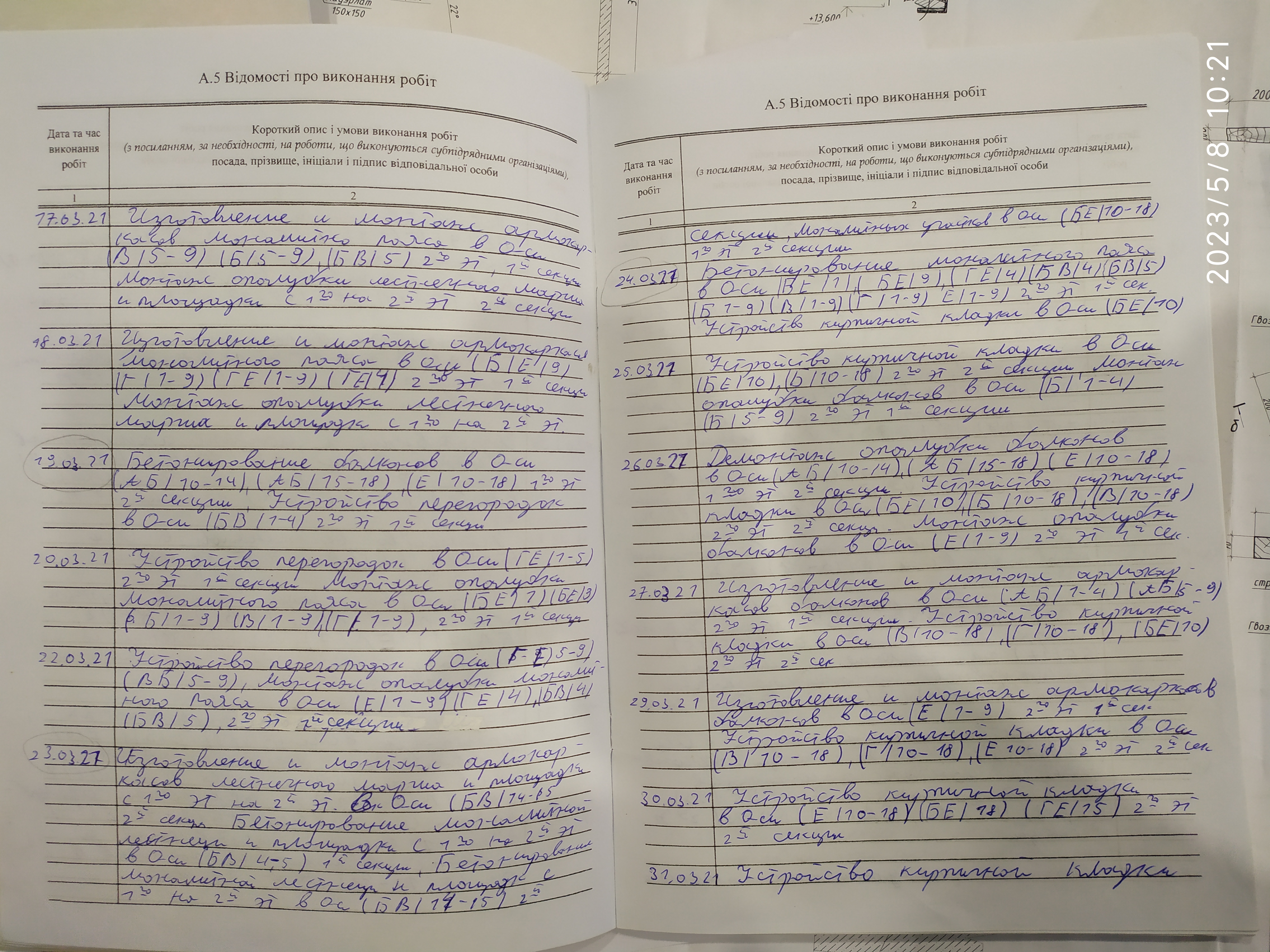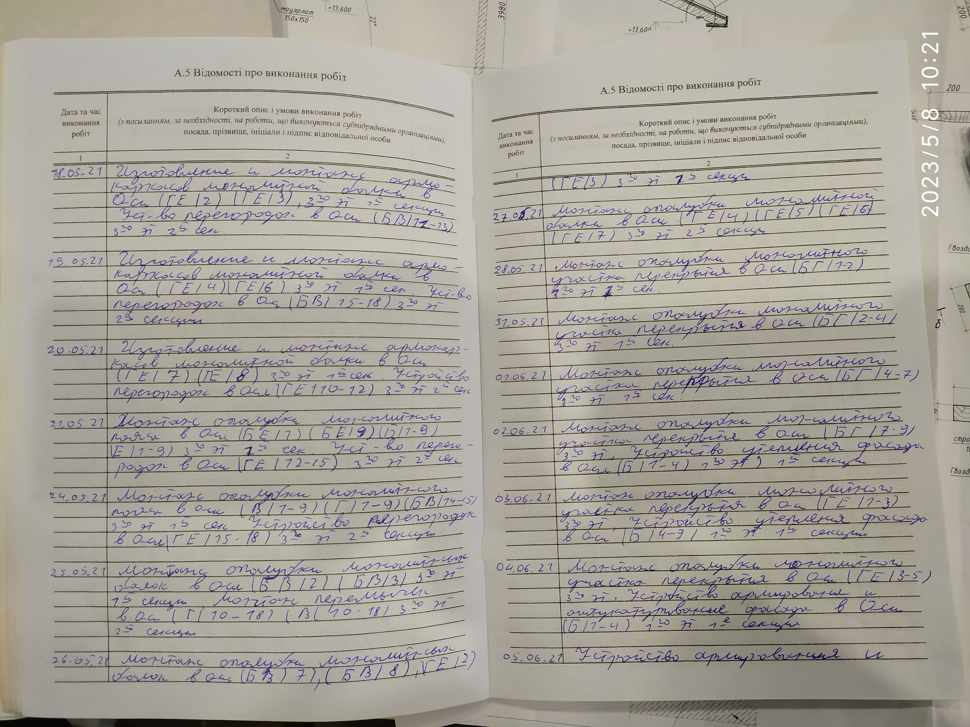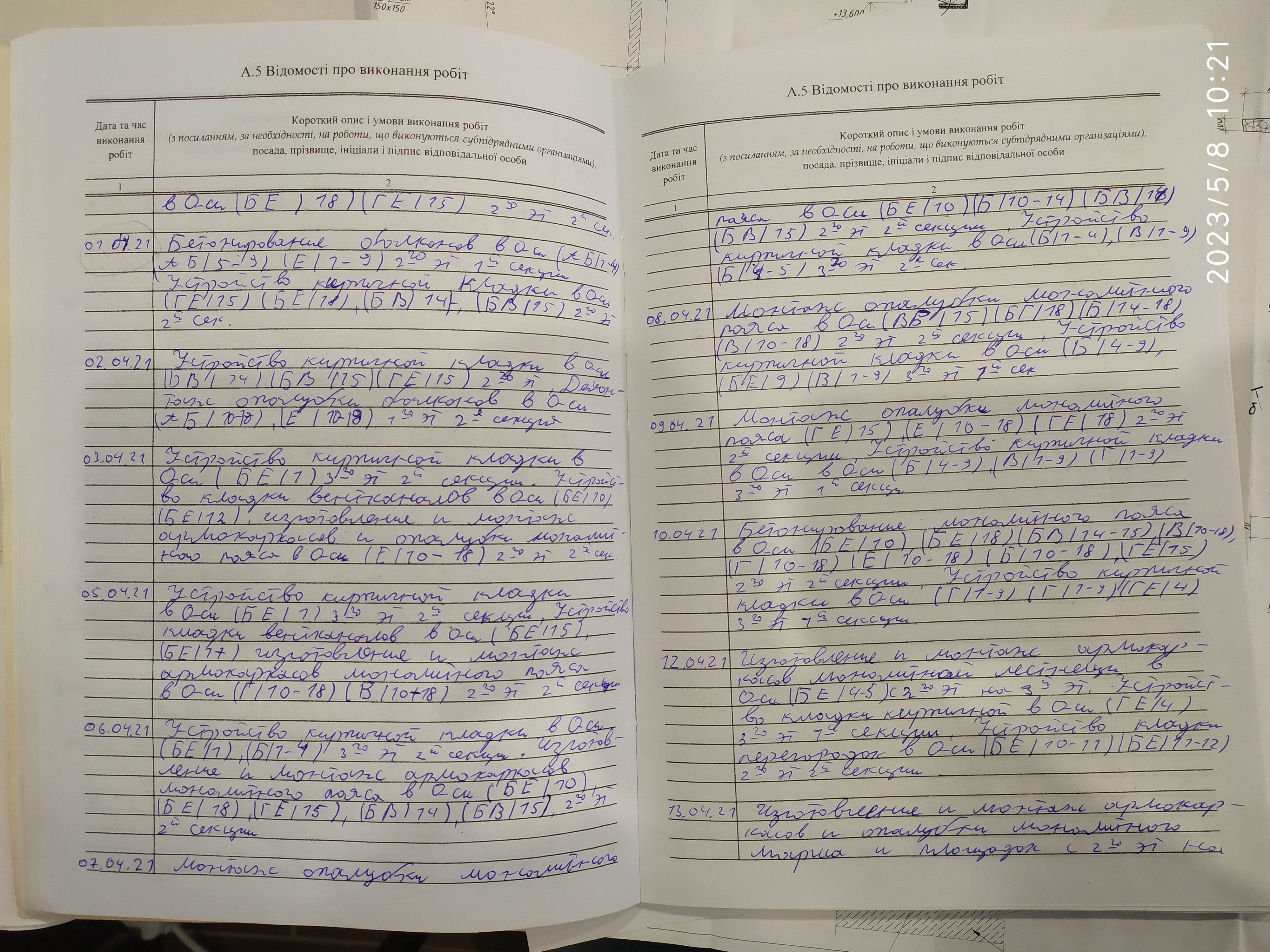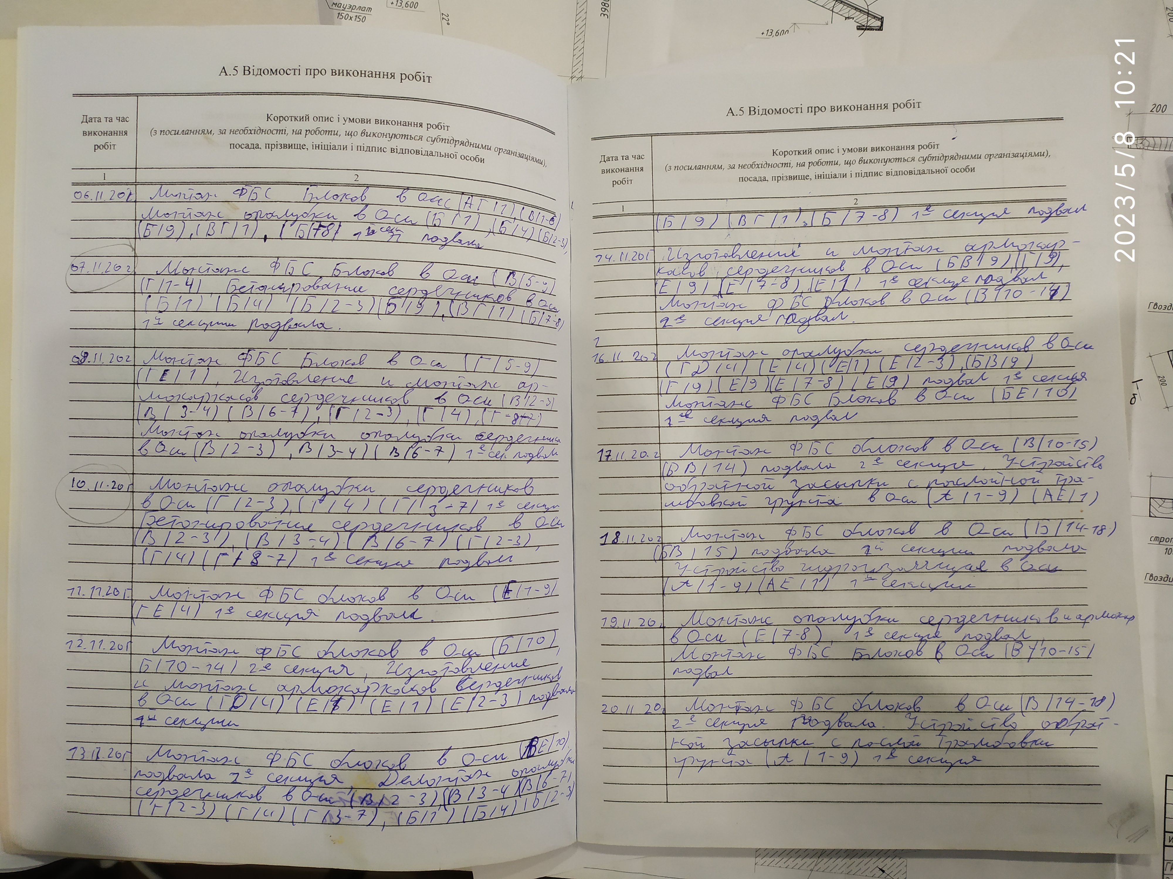 | 6 | Журнал виконання робіт із замонолічування монтажних стиків і вузлів | Не потребує |