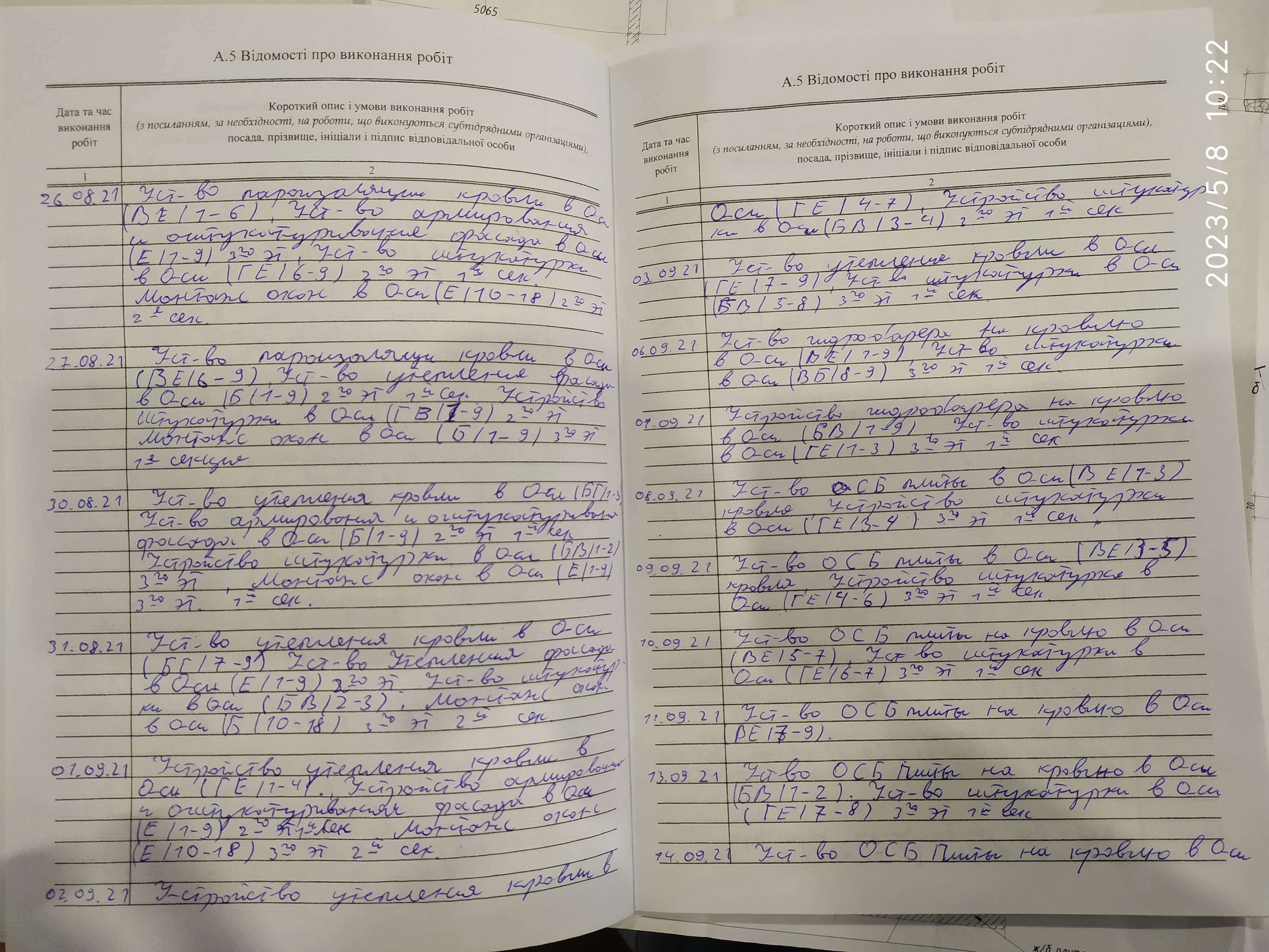 | 5 | Журнал виконання робіт з монтажу будівельних конструкцій | Не потребує |