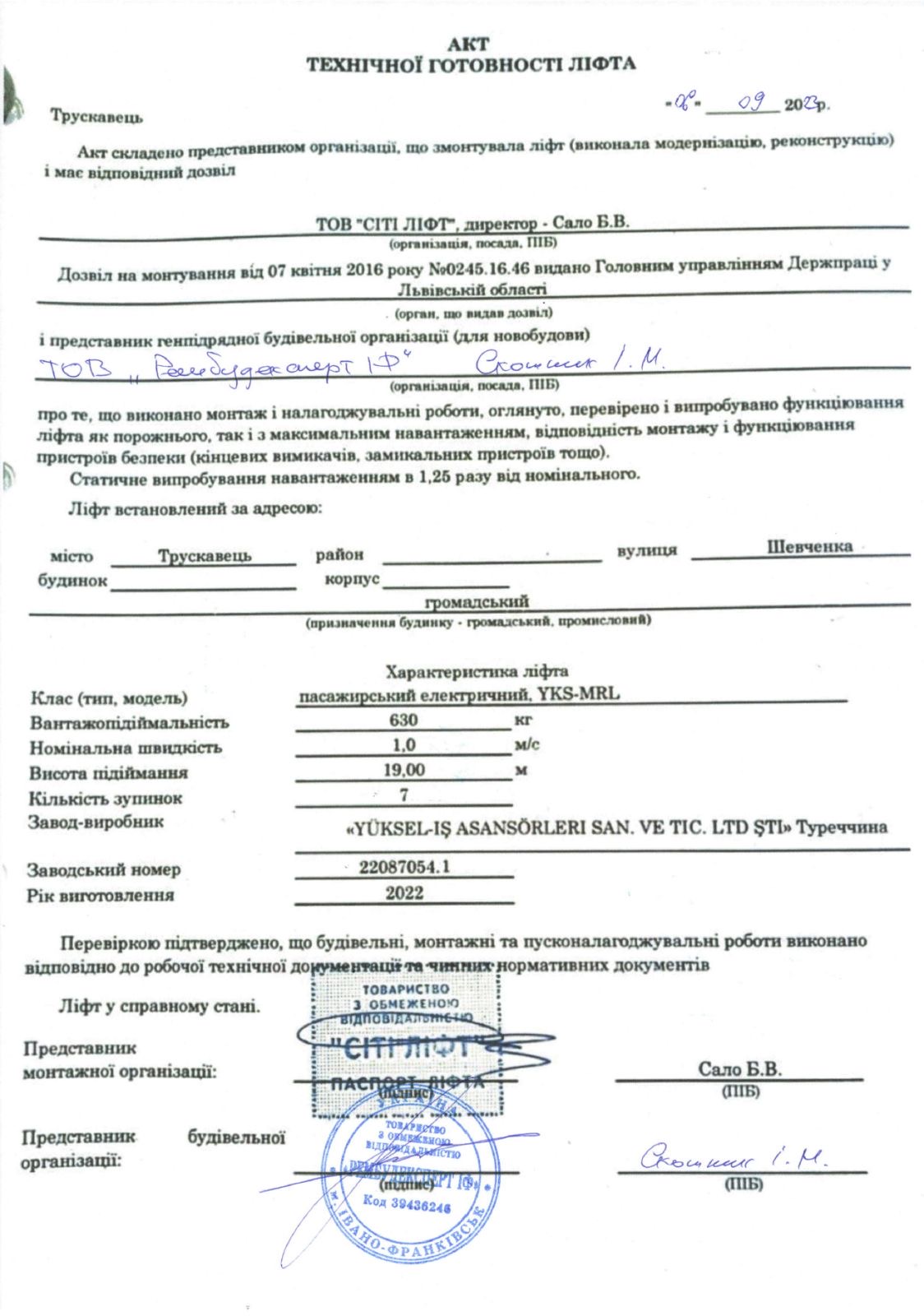 Видача сертифіката про прийняття в експлуатацію закінчених будівництвом об’єктів