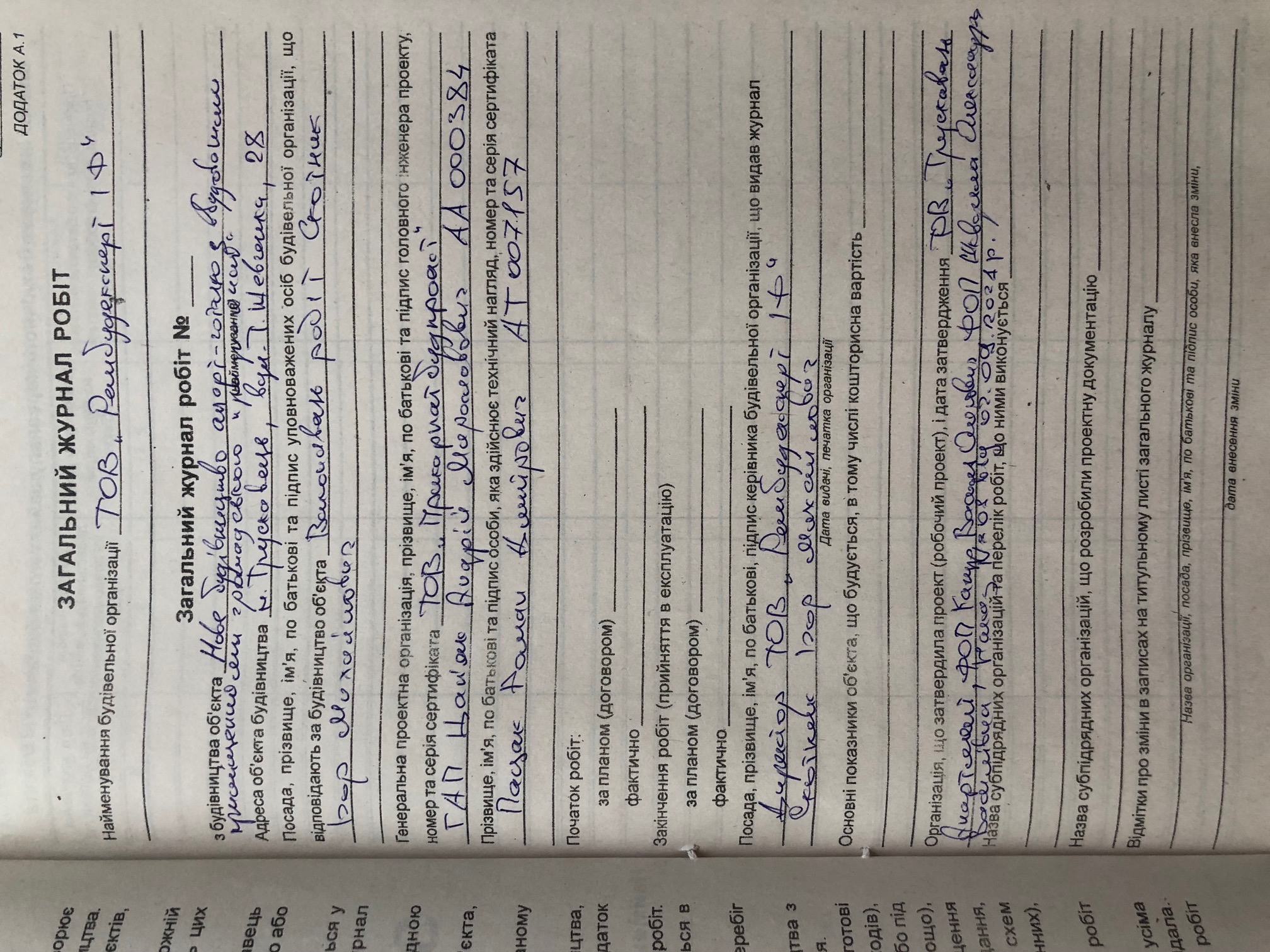 | 4 | Загальний журнал робіт | Відповідає |