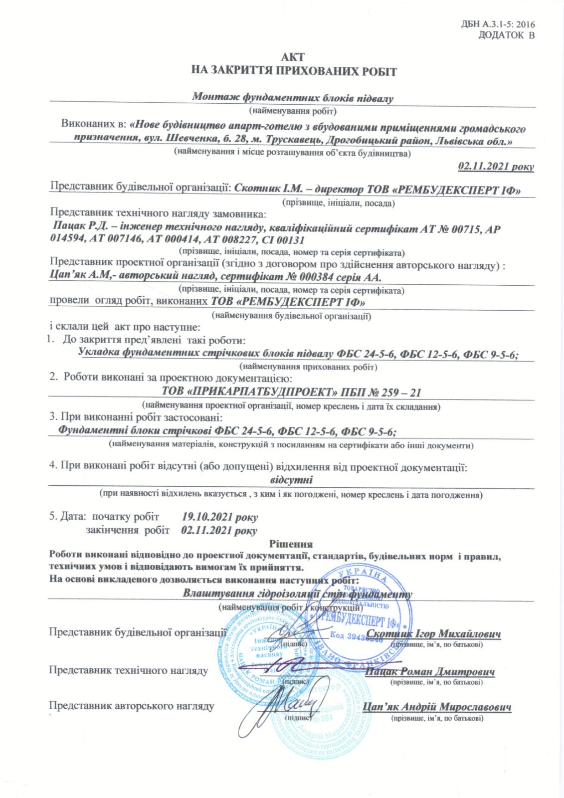 PD01:1519-9765-7324-0763 Зміни №2 №ПБП№259-21 від 2021-03-01 (видав ТОВАРИСТВО З ОБМЕЖЕНОЮ ВІДПОВІДАЛЬНІСТЮ "ПРИКАРПАТБУДПРОЕКТ") / Наявні експертизи: EX01:0168-2491-3146-8578