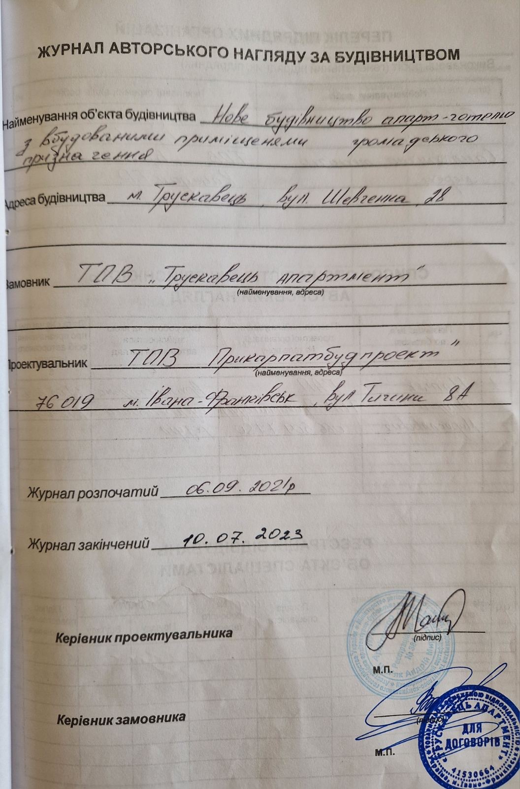 | 19 | Журнал авторського нагляду | Відповідає |
