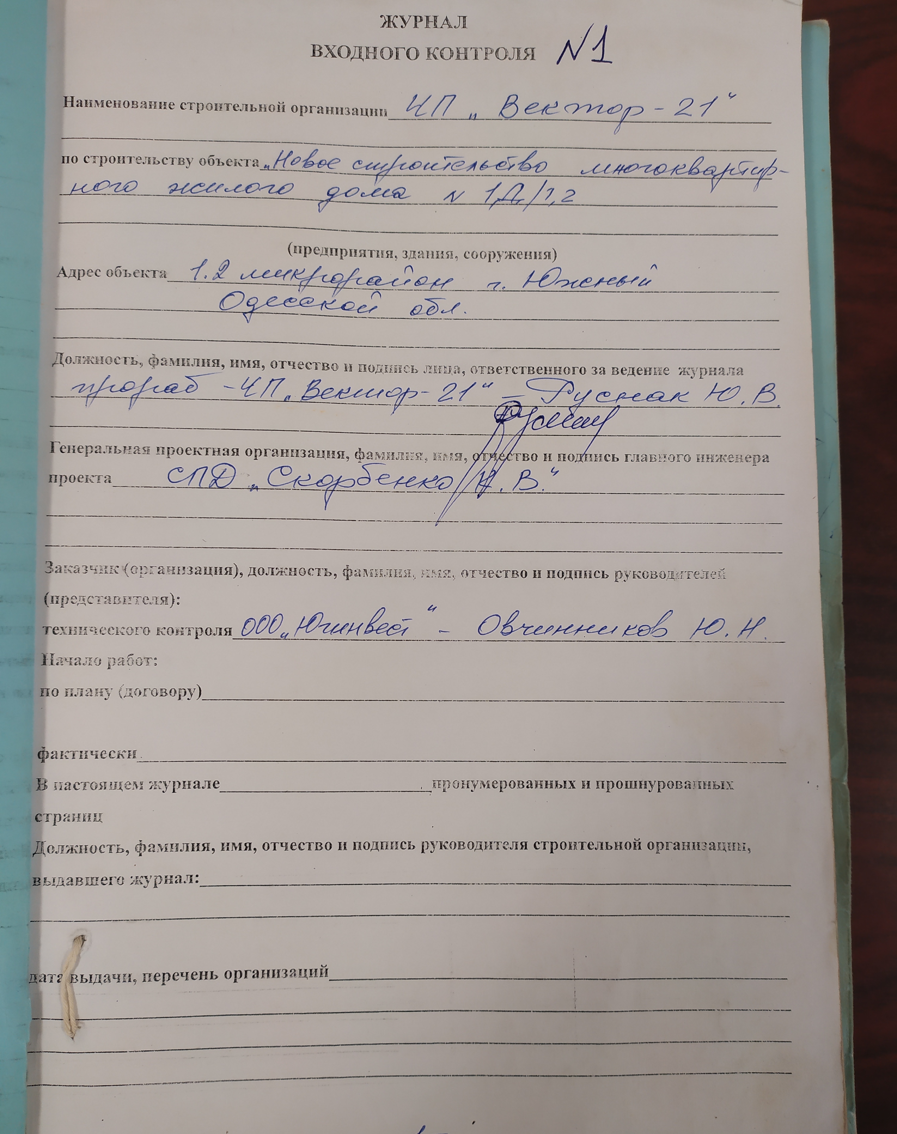 Нове будівництво багатоквартирного житлового будинку №1Д/1, в мікрорайоні №1.2, м.Южне, Одеська область