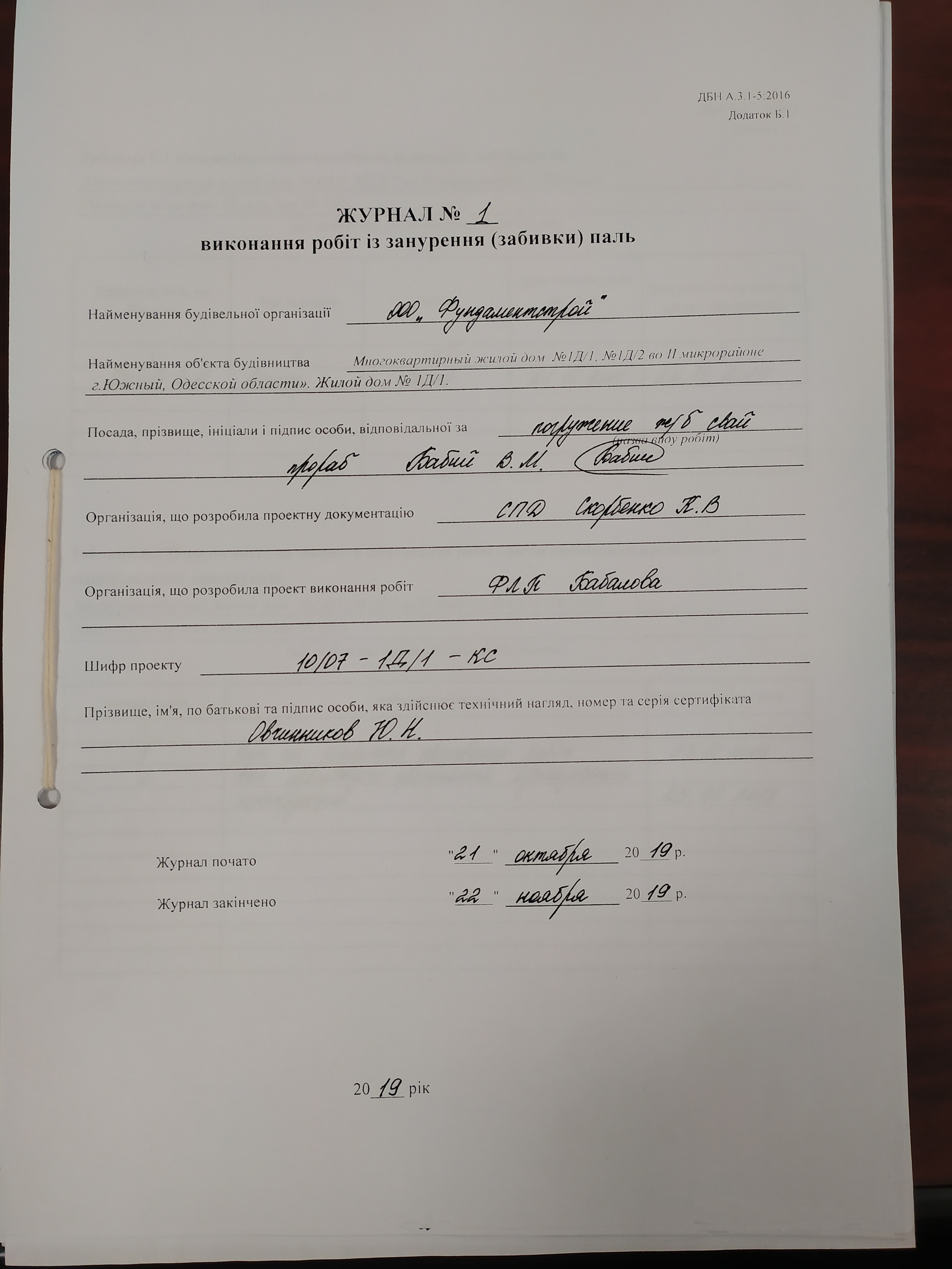 | 15 | Журнал виконання робіт із віброзанурення паль | Не потребує |