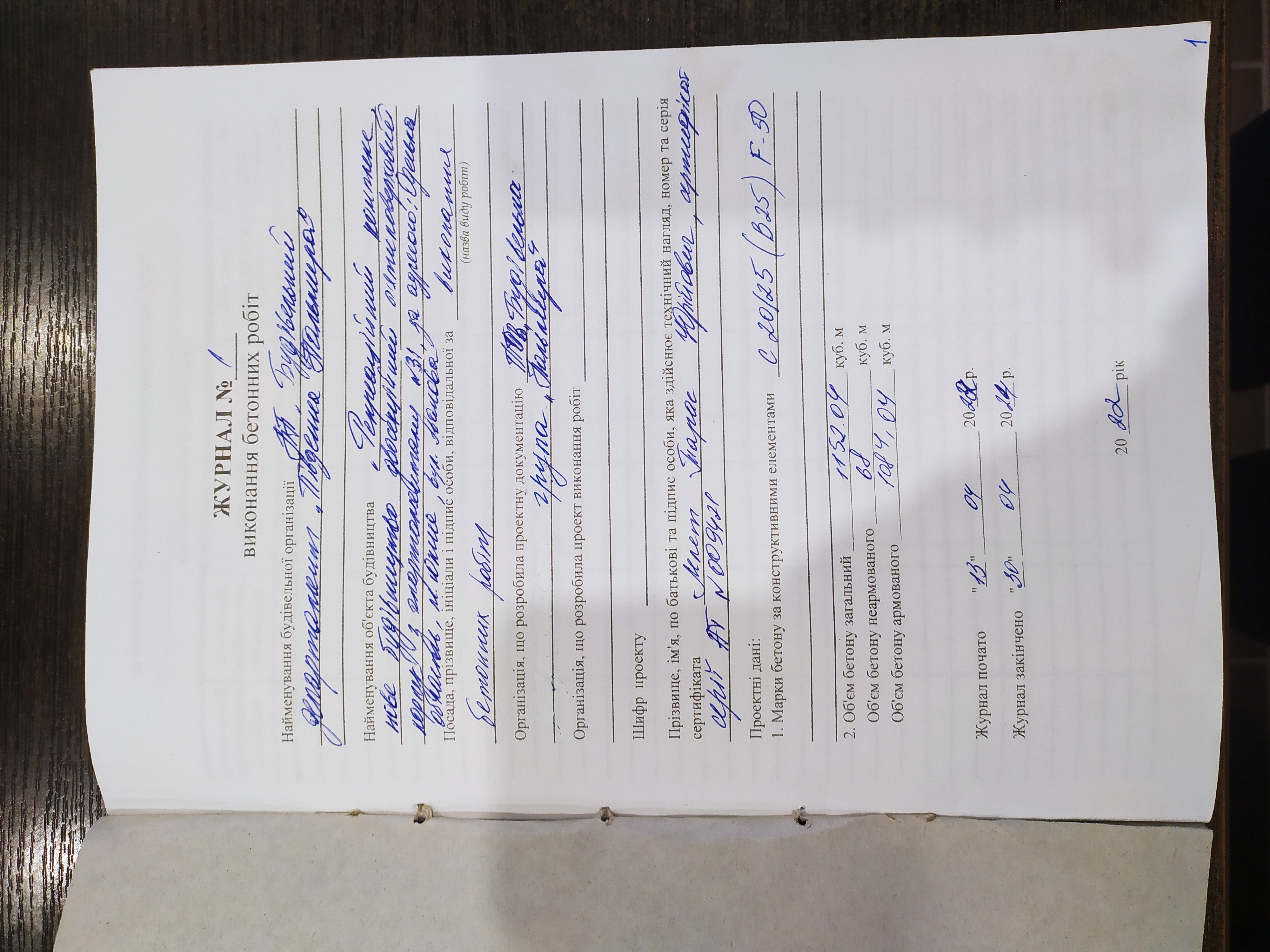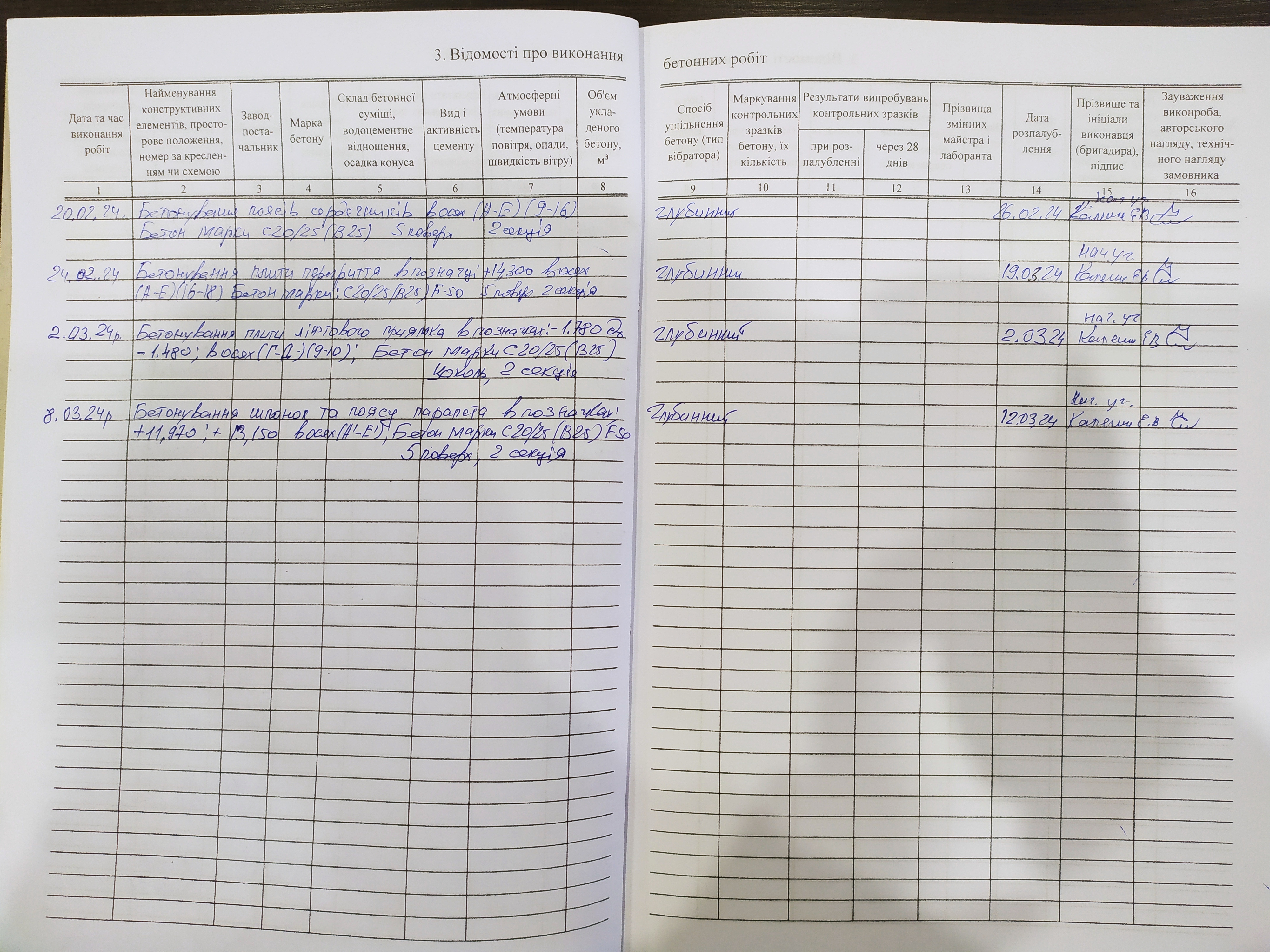 | 17 | Журнал виконання бетонних робіт | Відповідає |