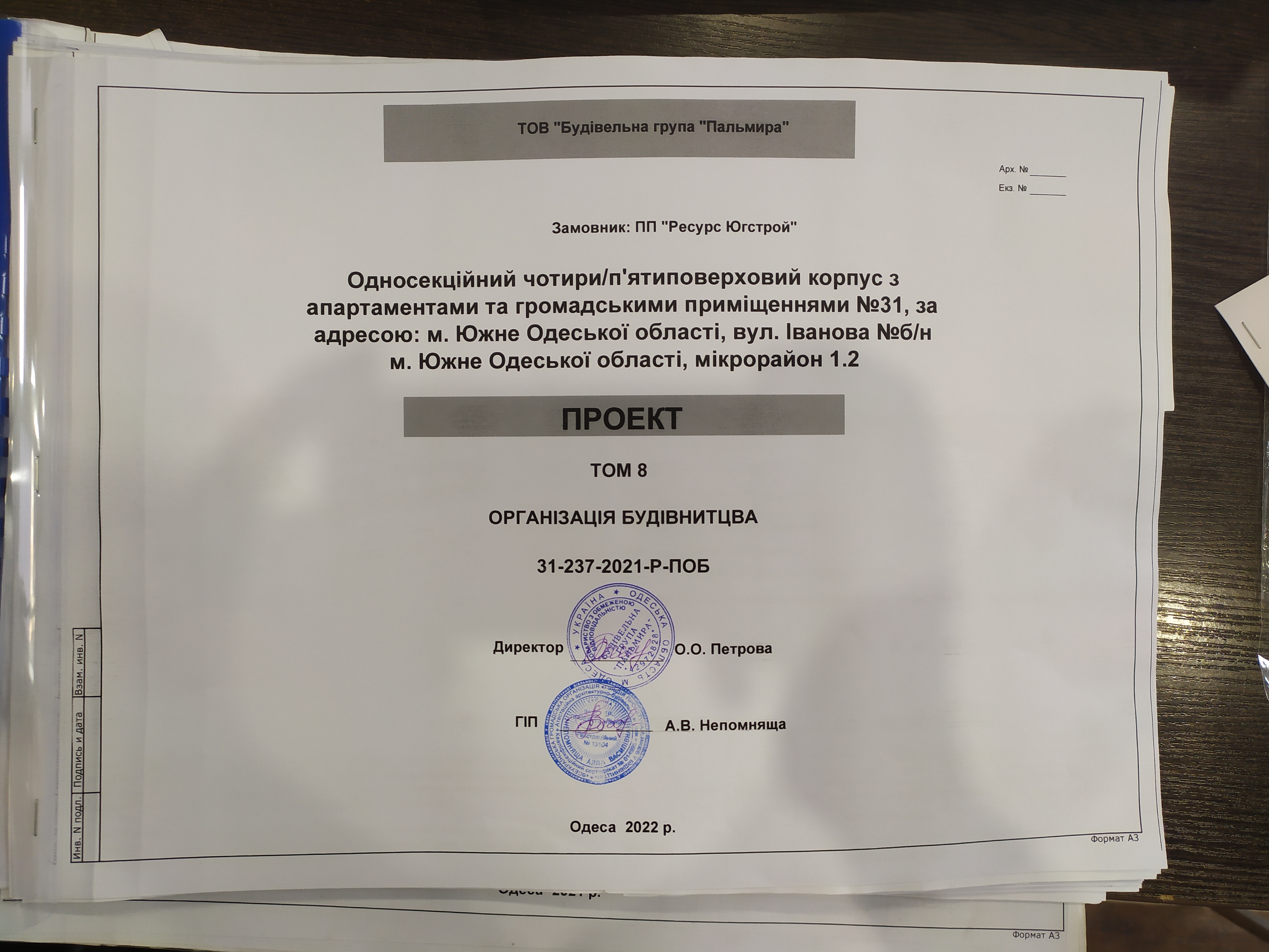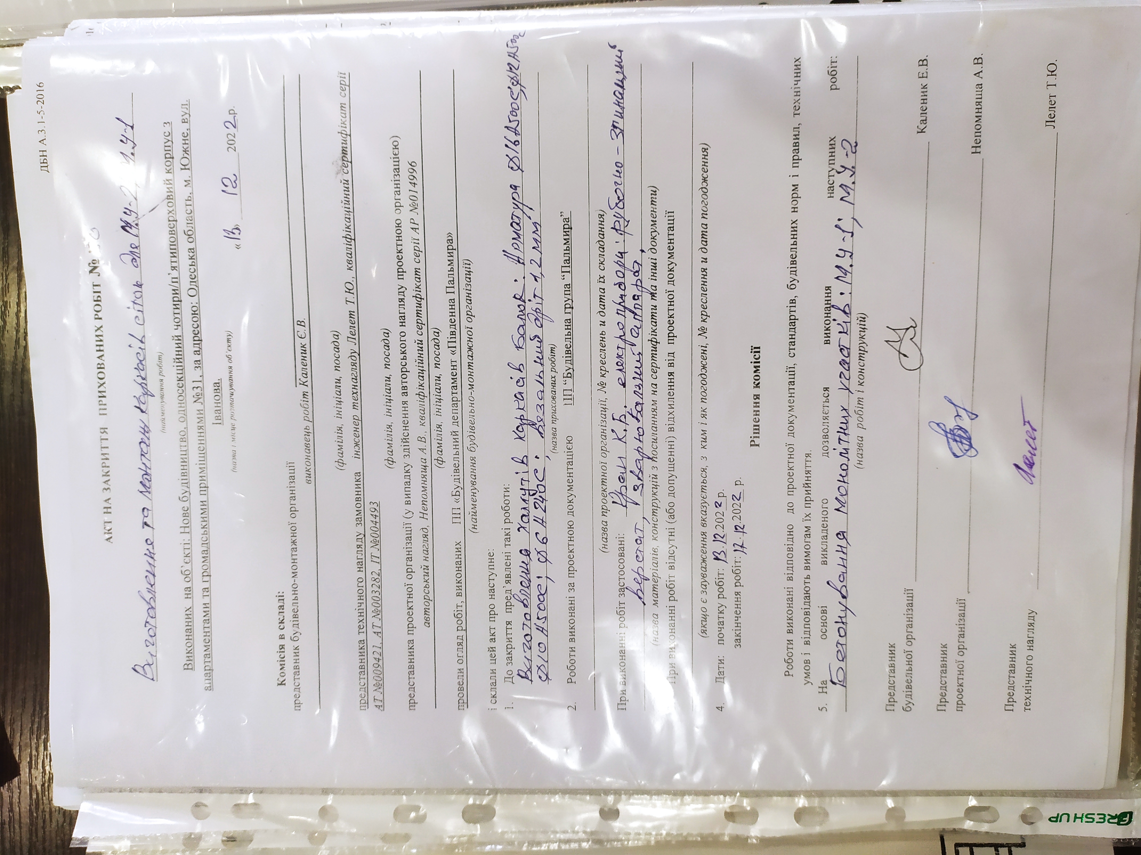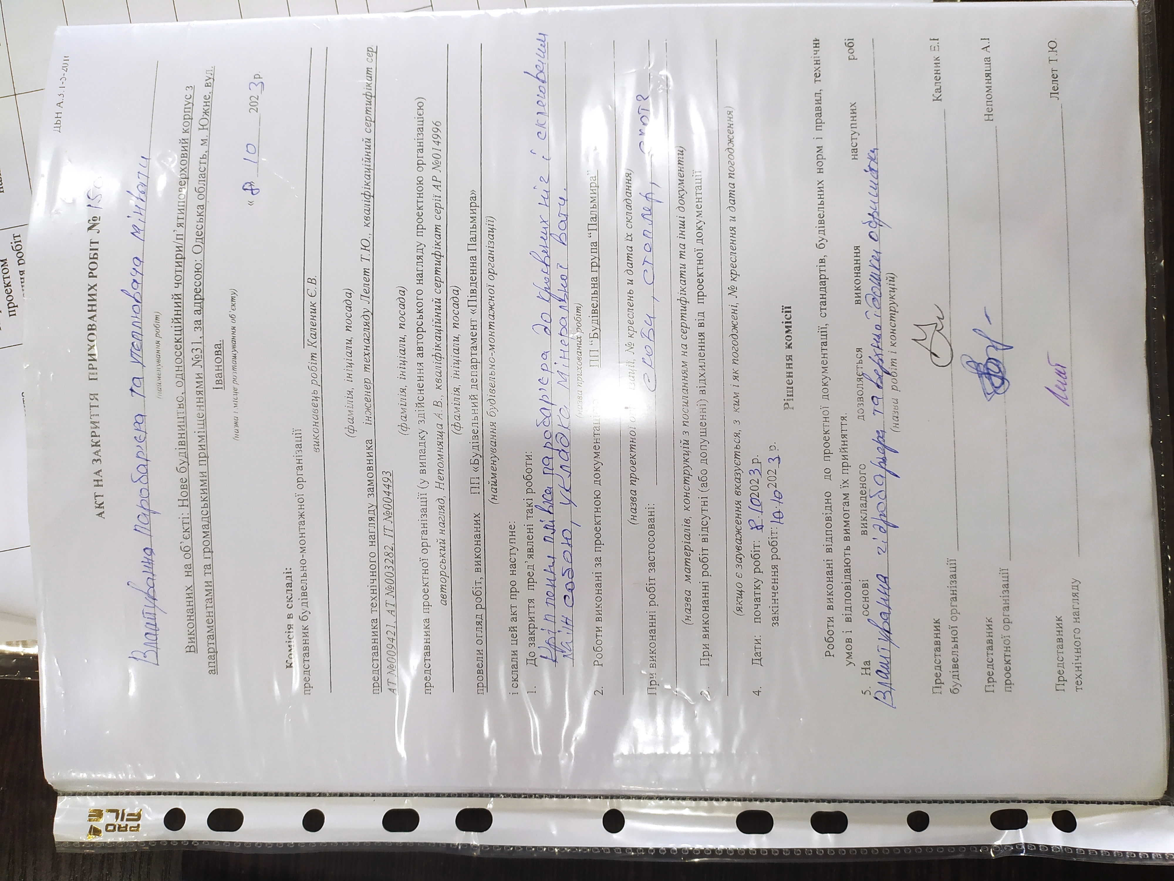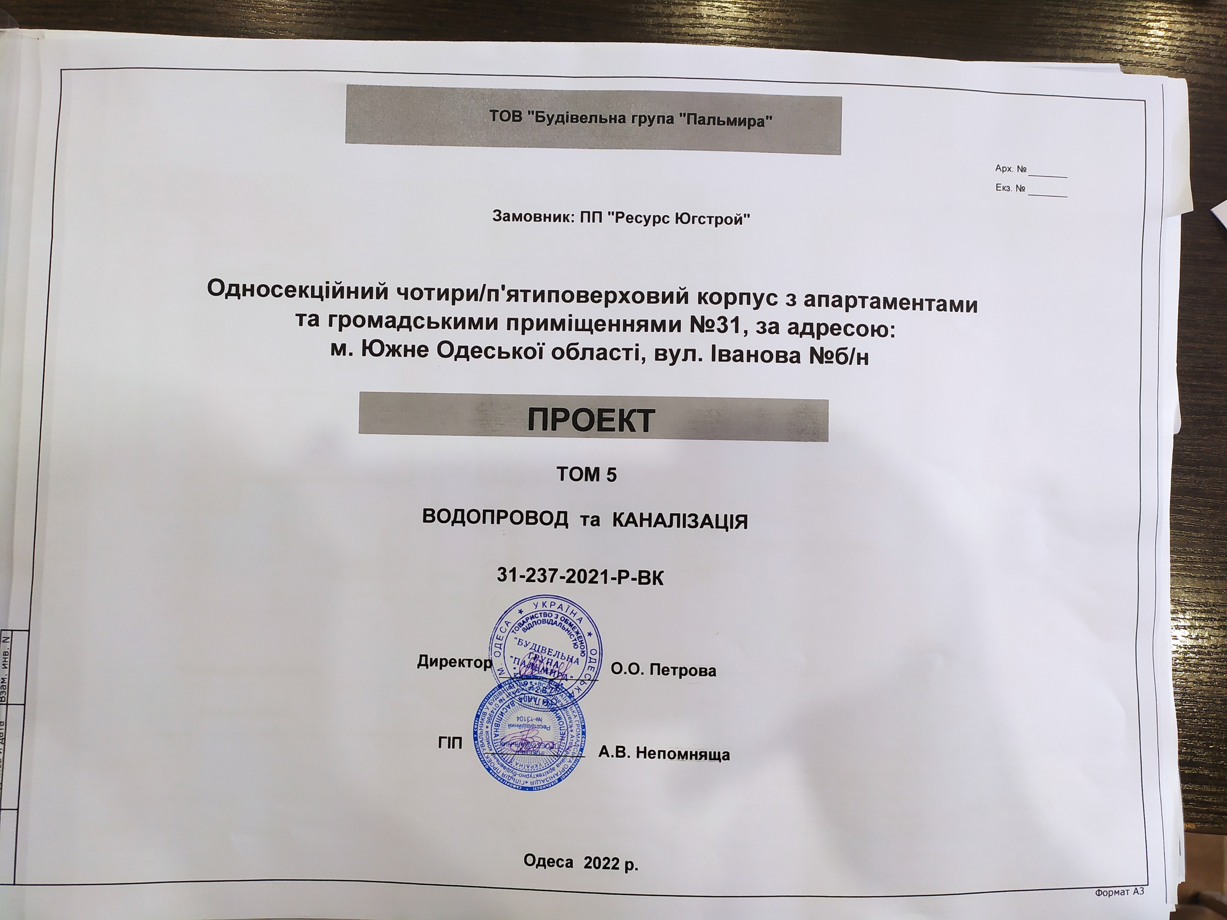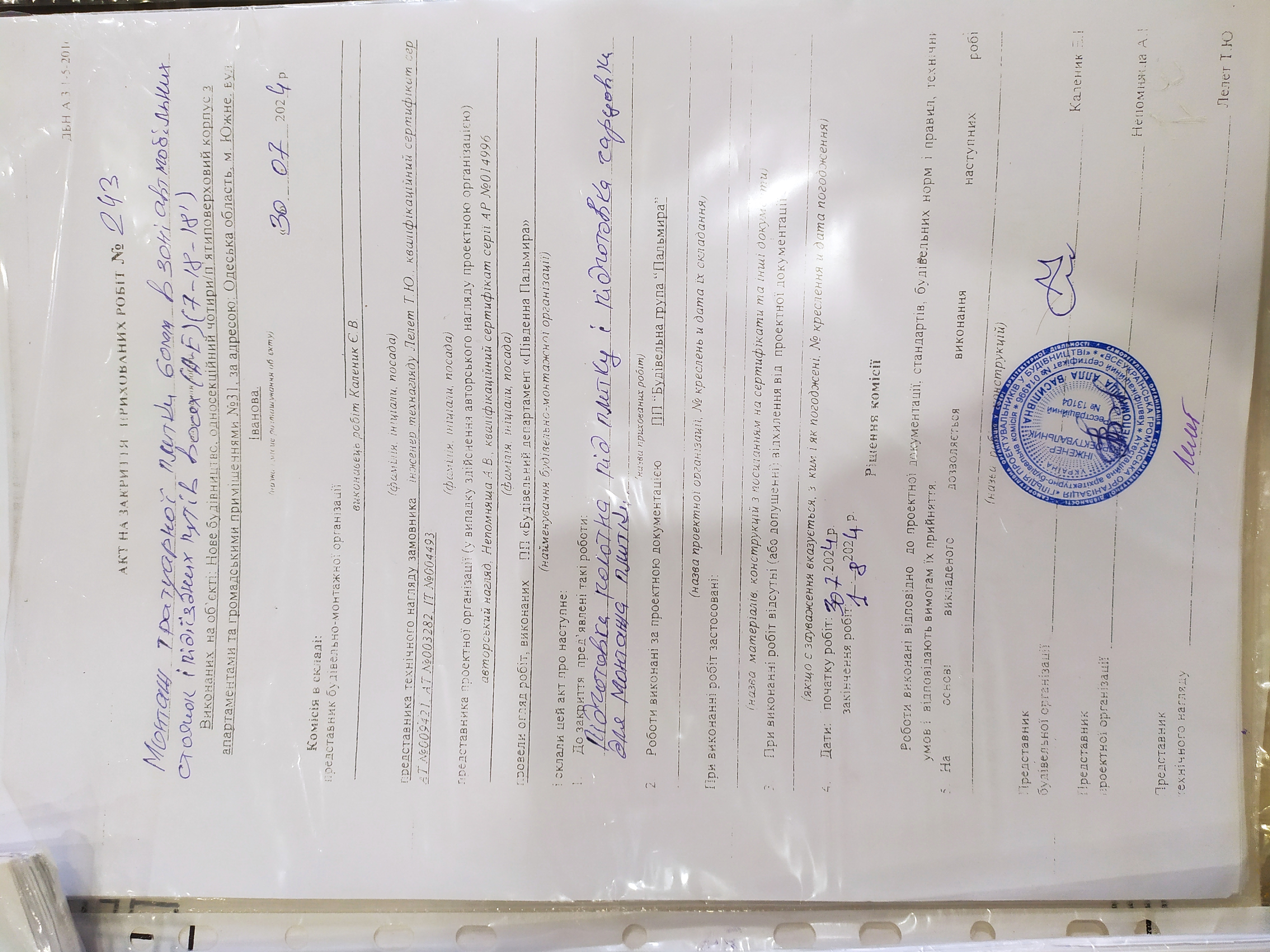 | З сертифікатом | НЕПОМНЯЩА АЛЛА ВАСИЛІВНА (АР 014996 ) | СС3 | головний інженер проєкту |