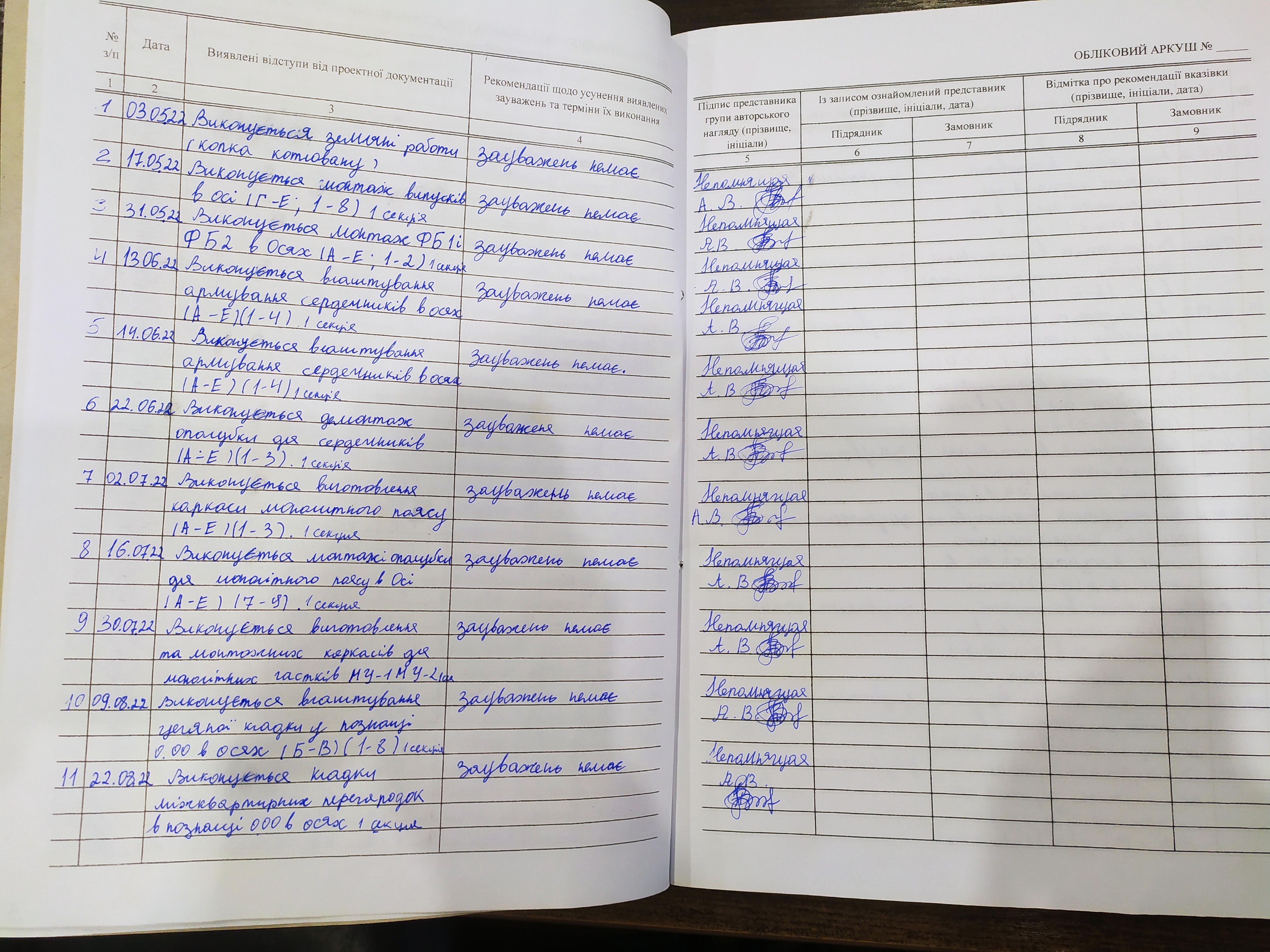 | 6 | Журнал виконання робіт із замонолічування монтажних стиків і вузлів | Не потребує |