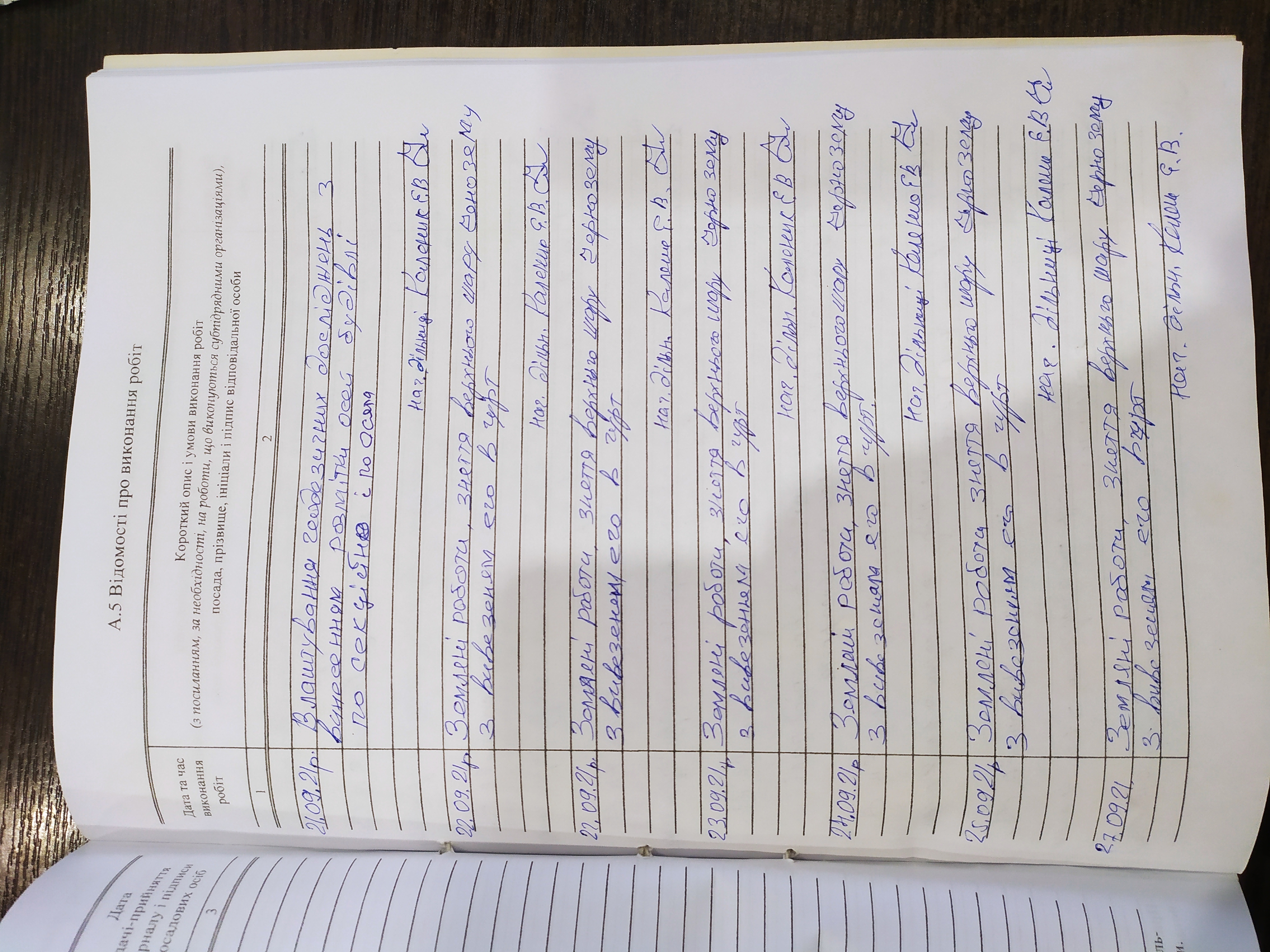 | Посада | ПІб | Види виконаних робіт | Назва документа | Номер документа | Дата видачі |