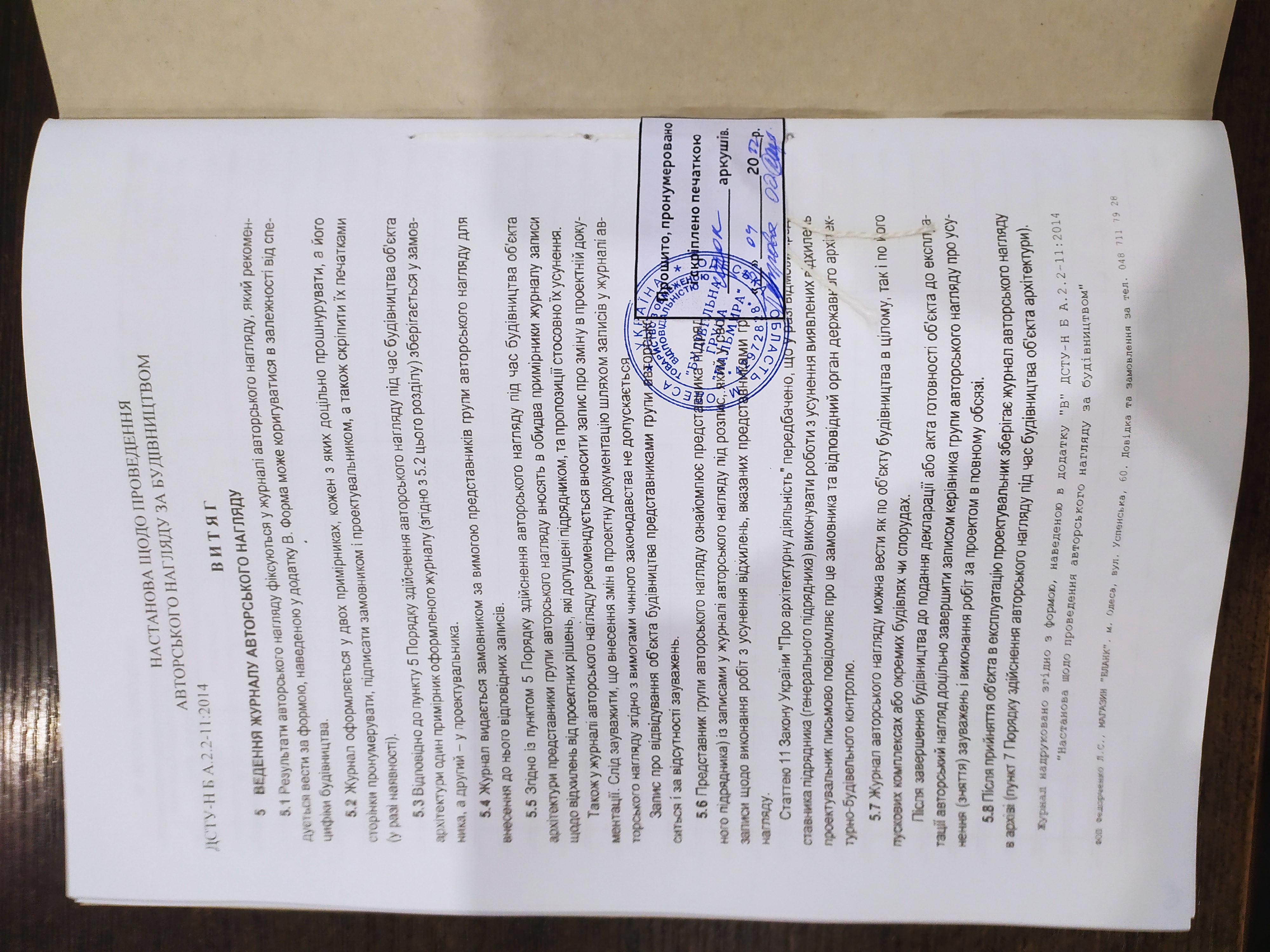 Документ про авторський нагляд, що пов'язаний з проектною документацією