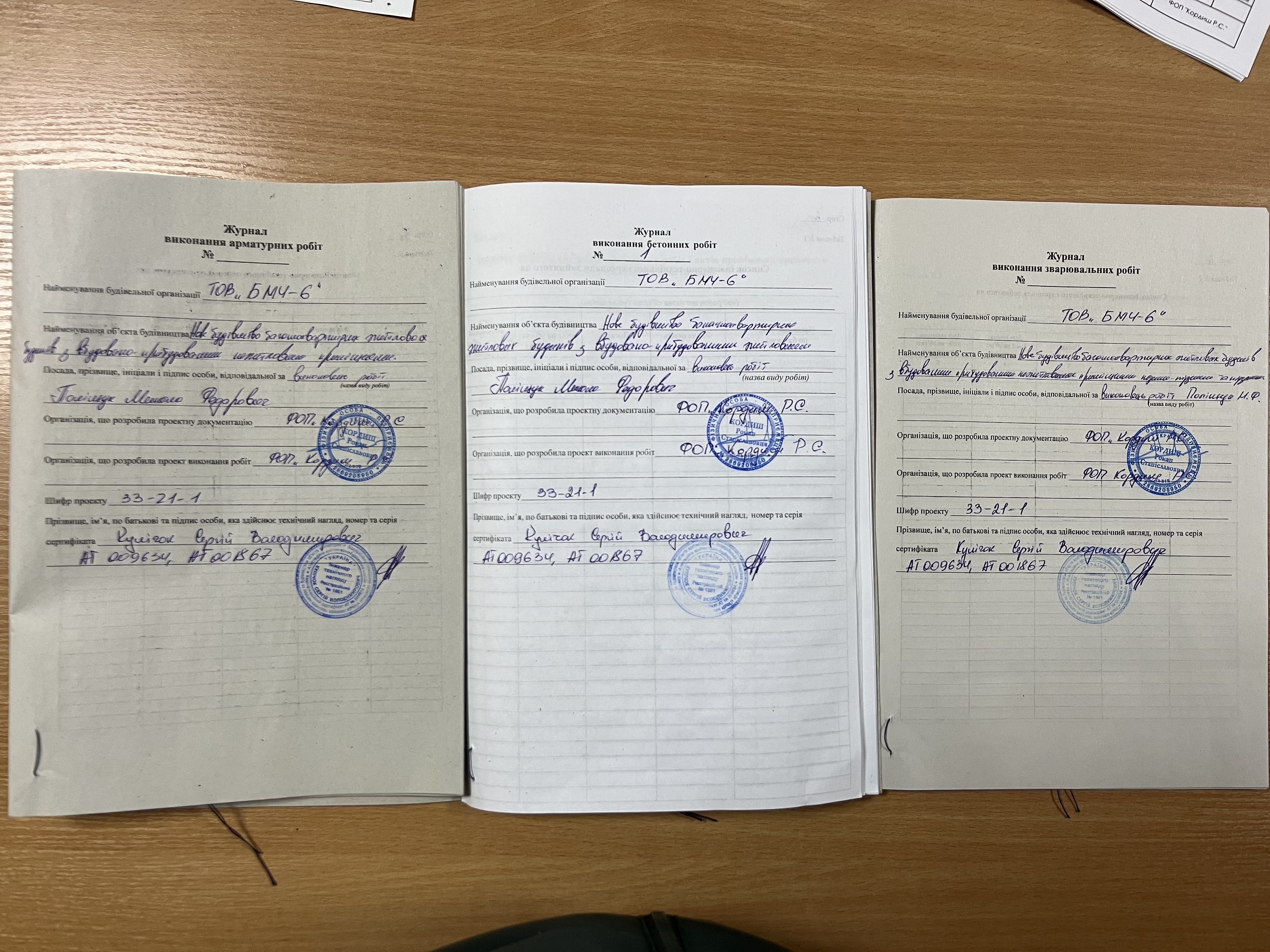 | 5 | Журнал виконання робіт з монтажу будівельних конструкцій | Не потребує |