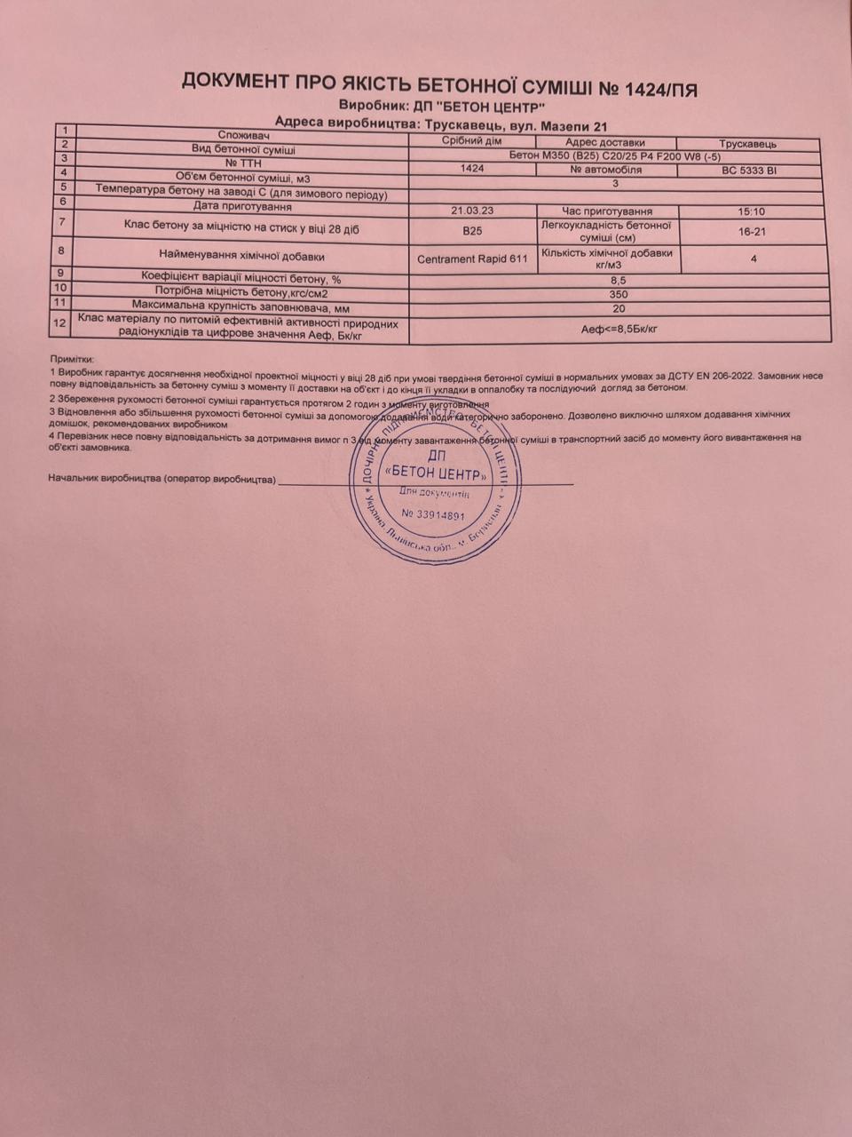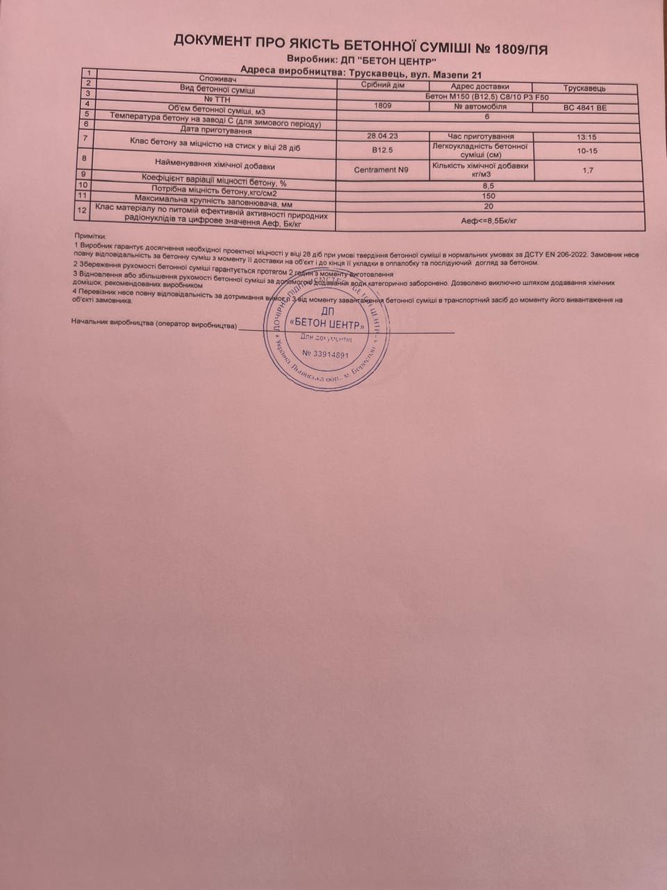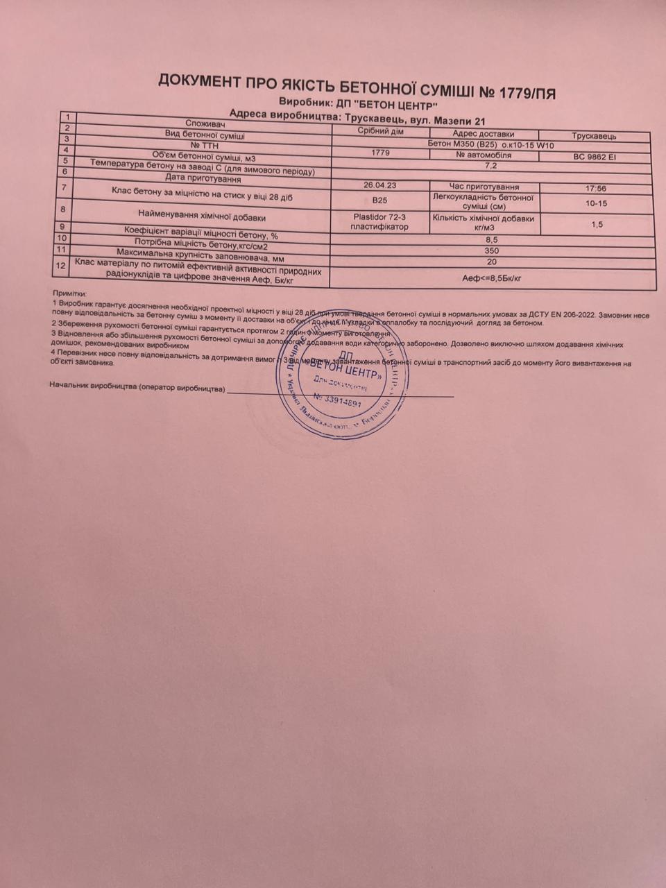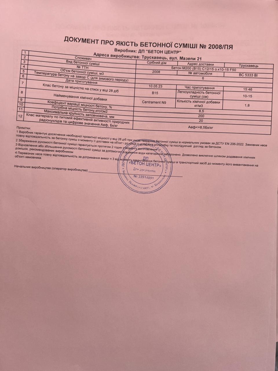 | 17 | Журнал виконання бетонних робіт | Не потребує |