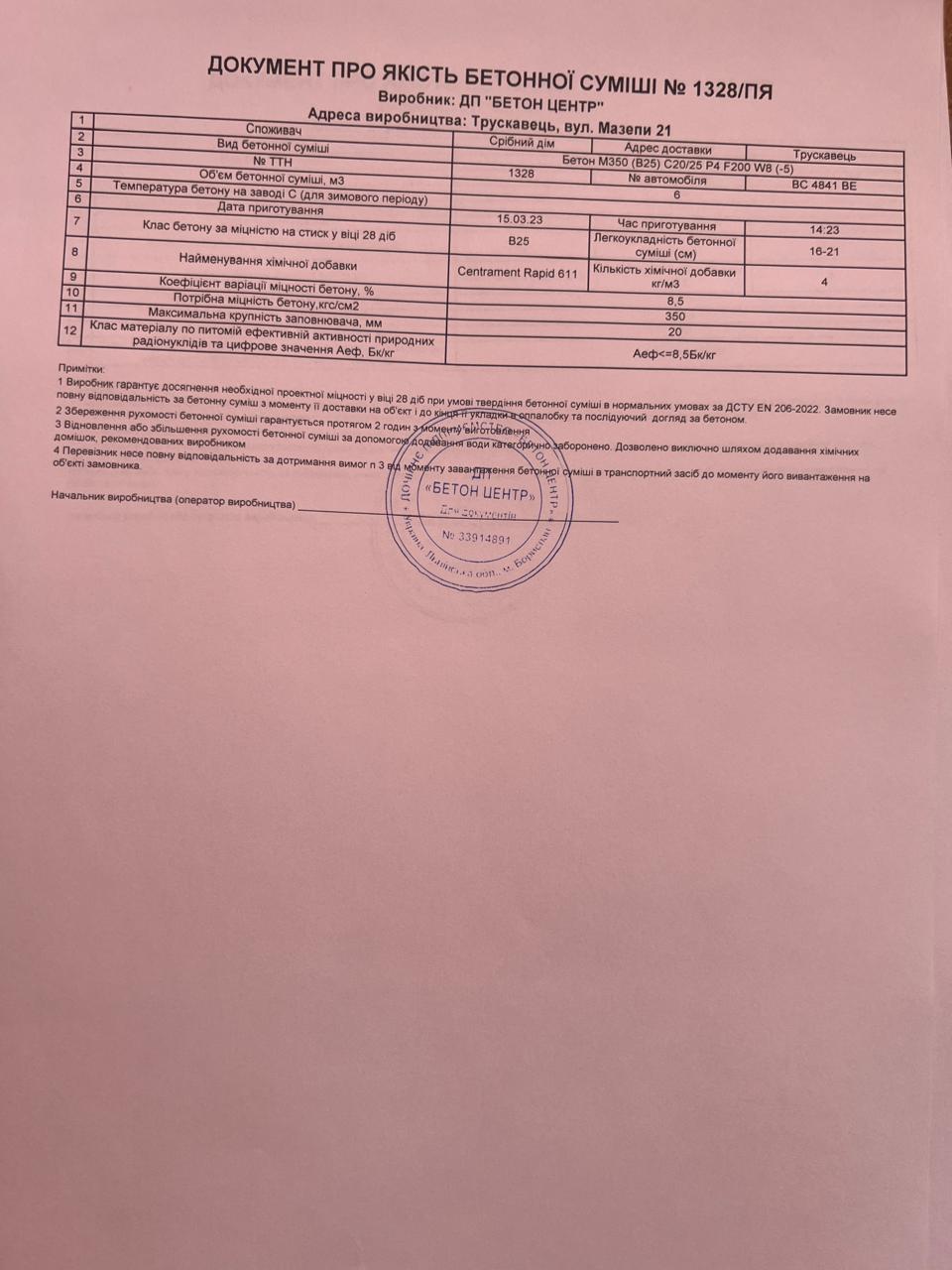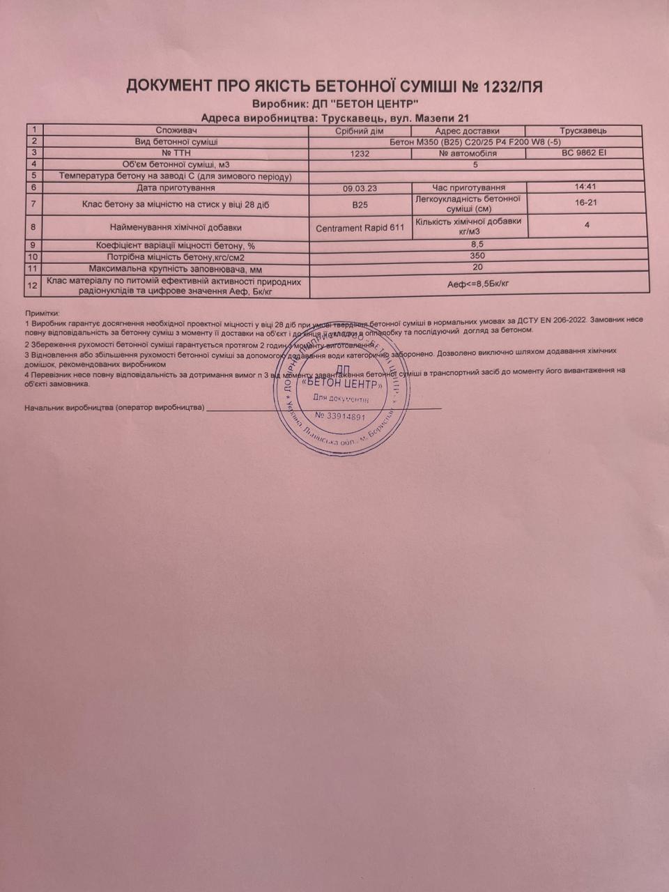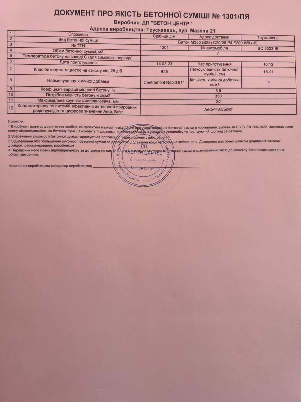 | 17 | Журнал виконання бетонних робіт | Не потребує |