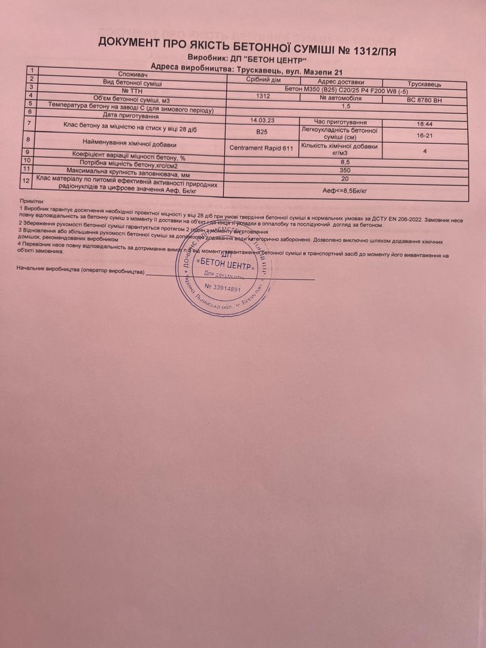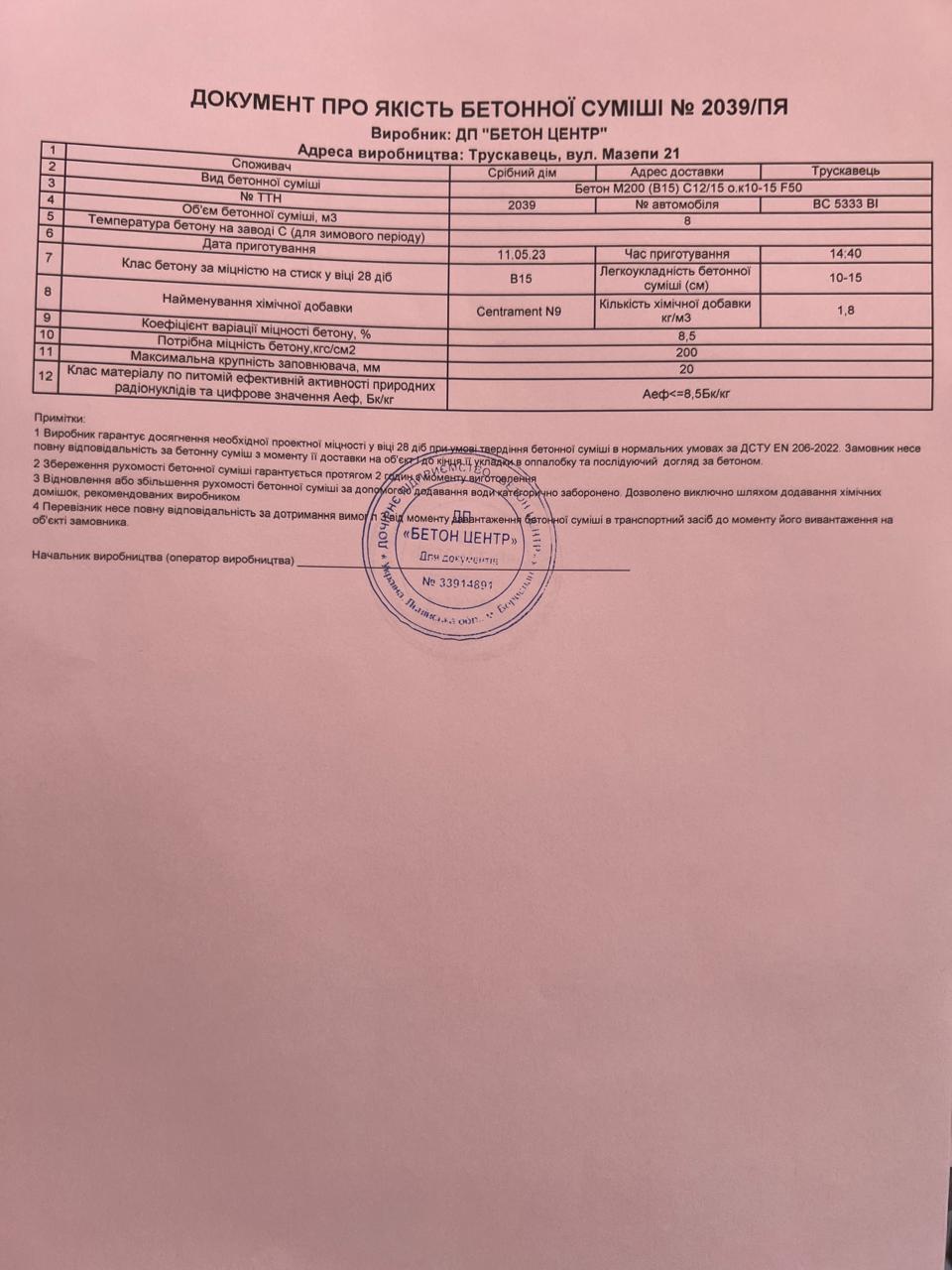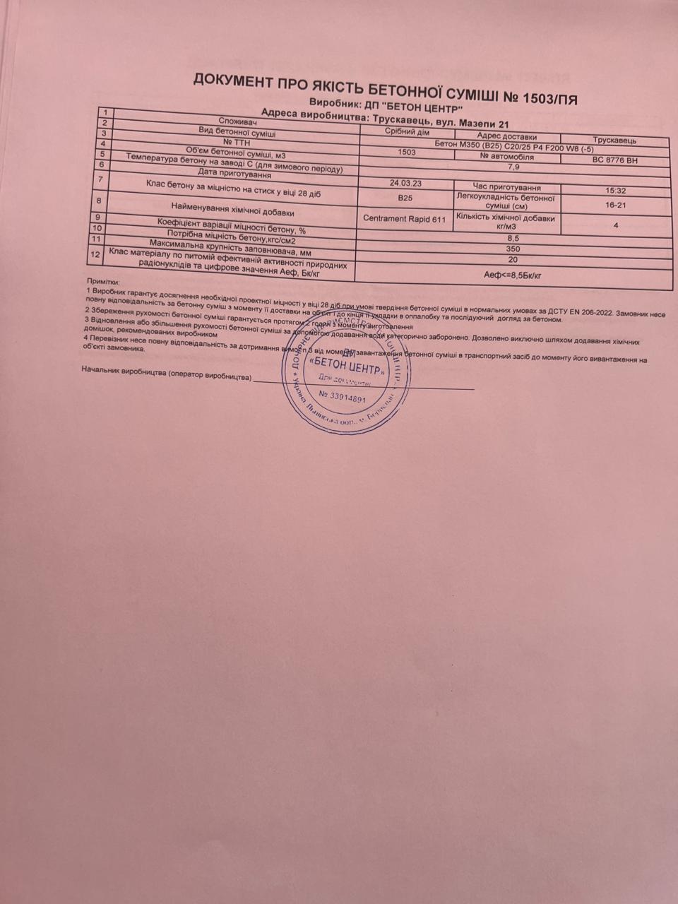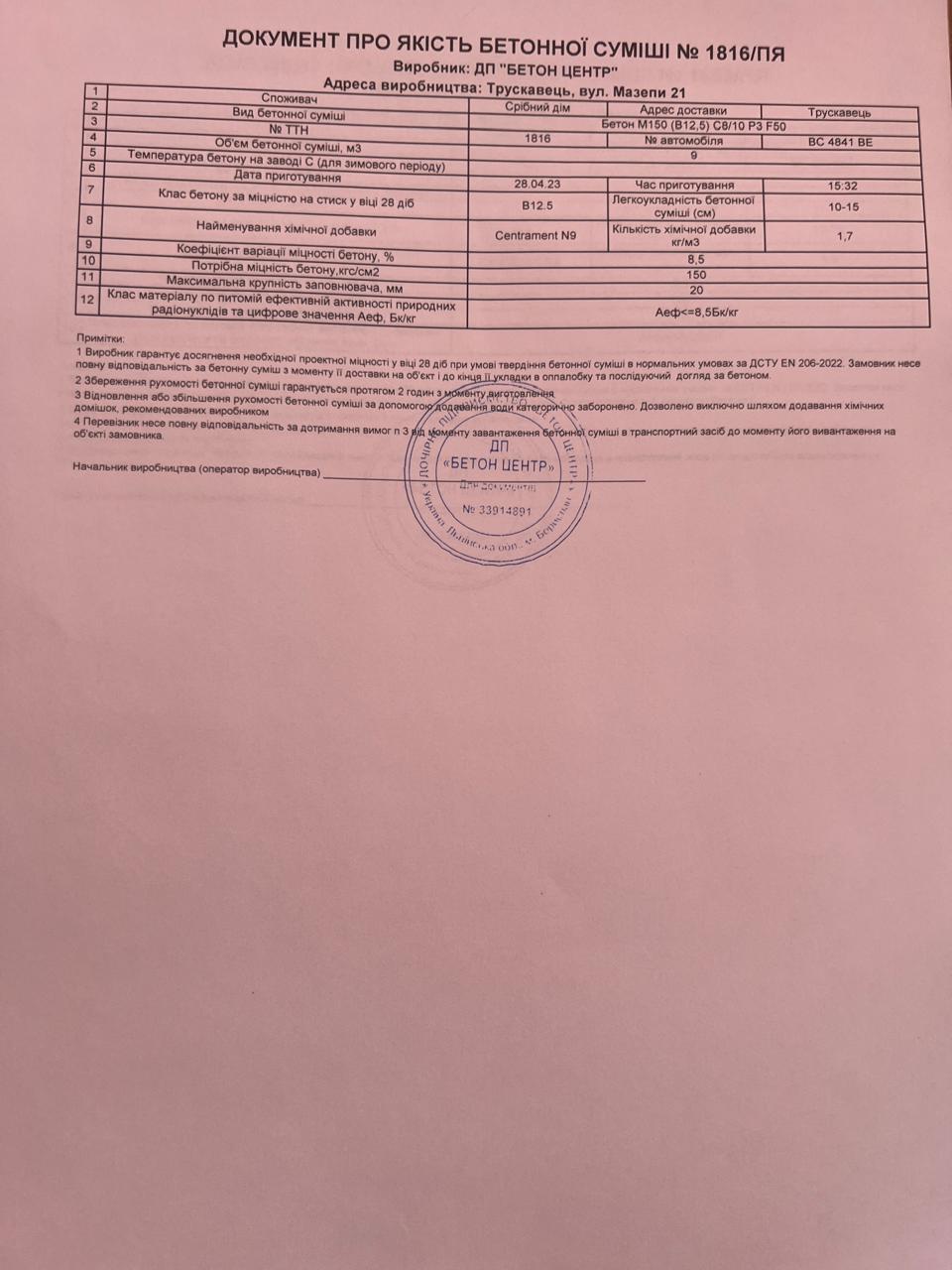 | 17 | Журнал виконання бетонних робіт | Не потребує |