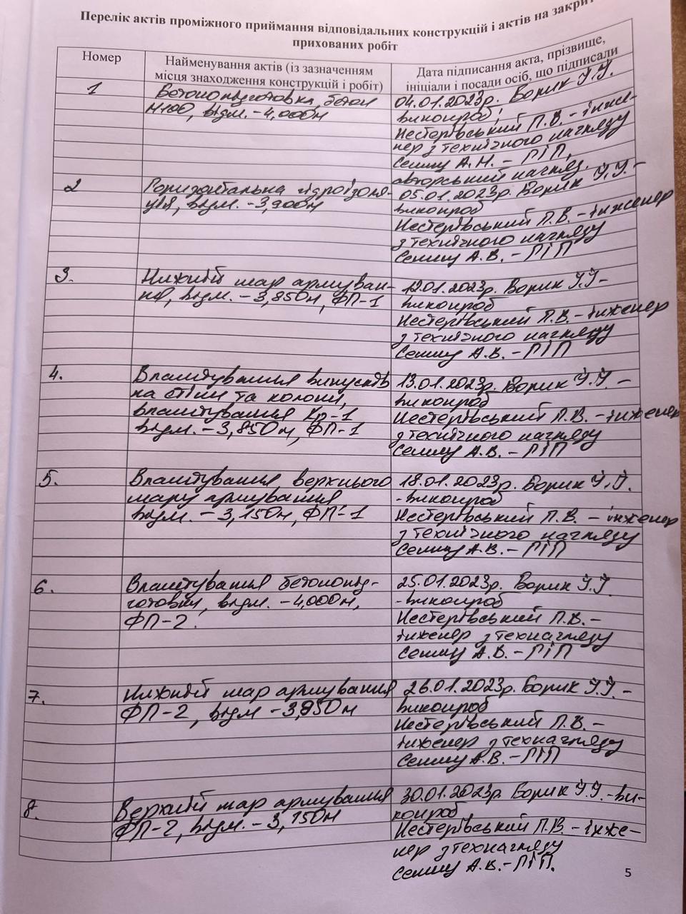 | 5 | Журнал виконання робіт з монтажу будівельних конструкцій | Не потребує |