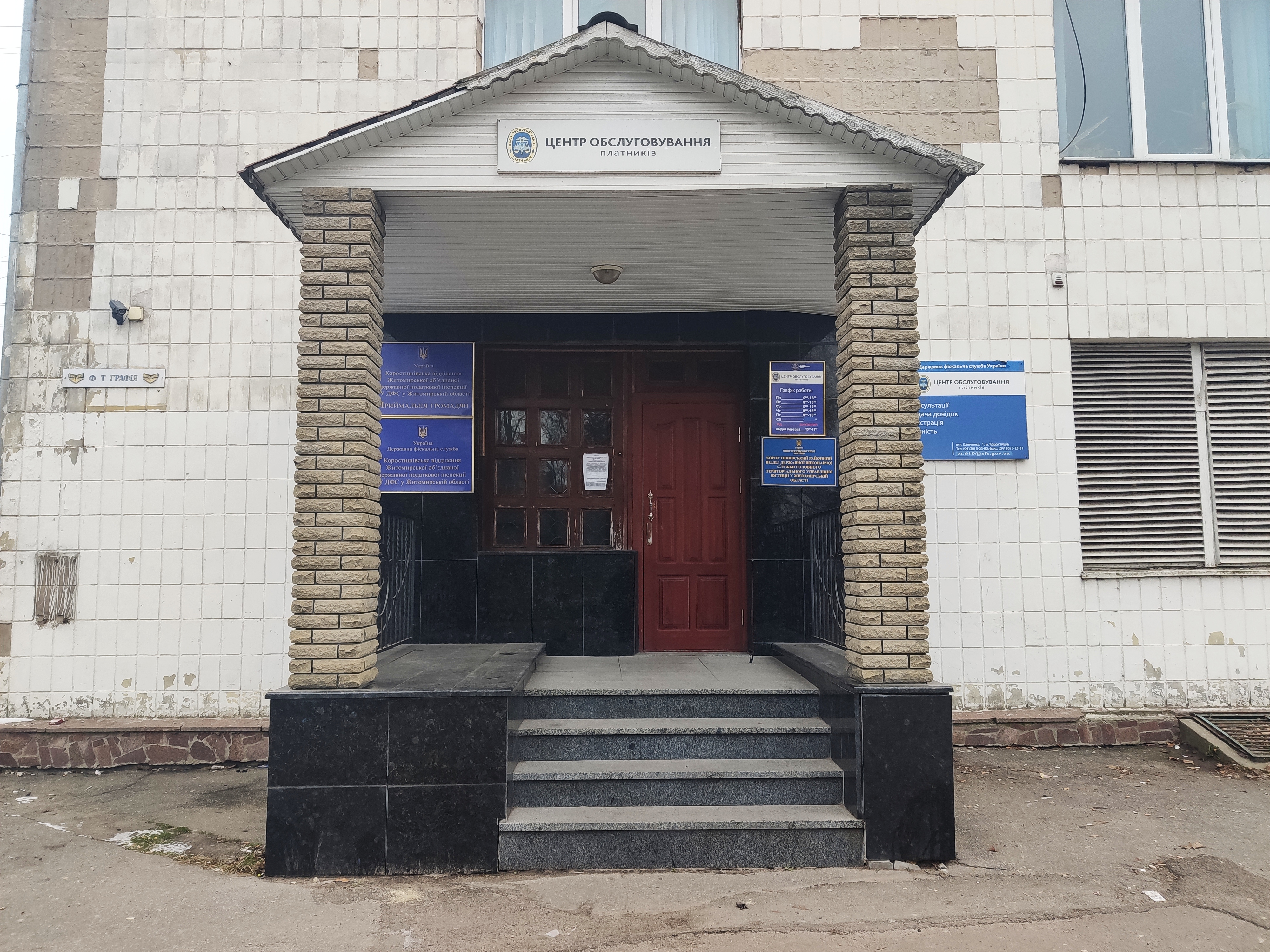 Житомирська обл., Житомирський район, Коростишівська територіальна громада, м. Коростишів (станом на 01.01.2021), вулиця Шевченка, б. 1
